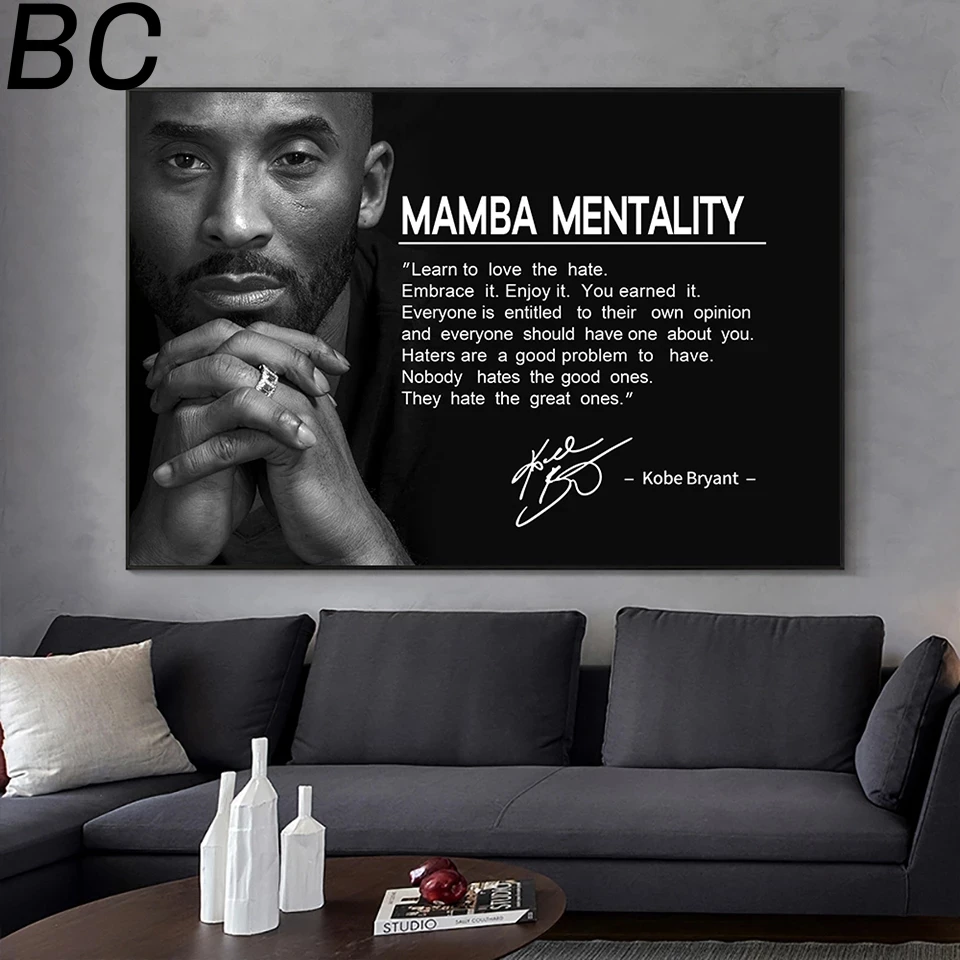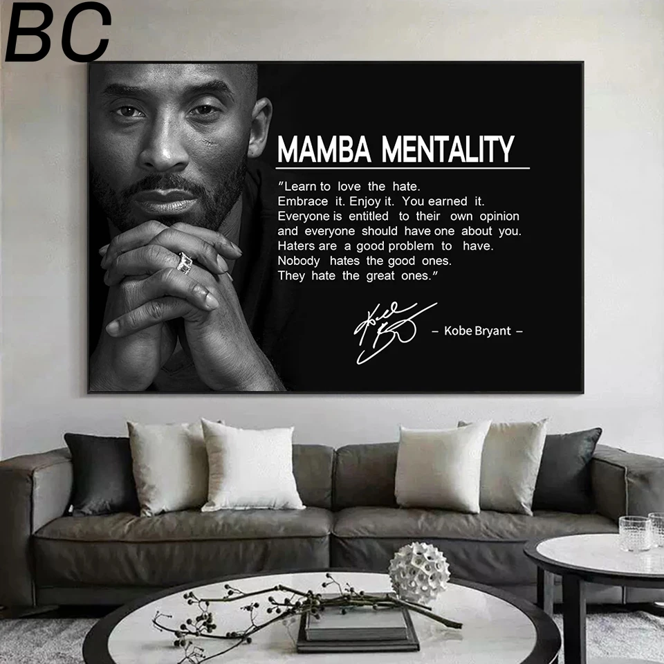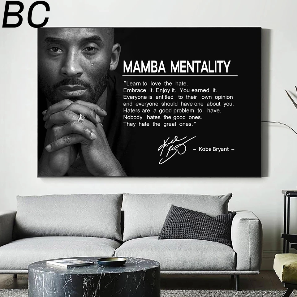 Знаменитый постер в виде баскетбольной звезды Коби Брайант маба дух холст живопись памятный зал черно-белая стена украшение для дома