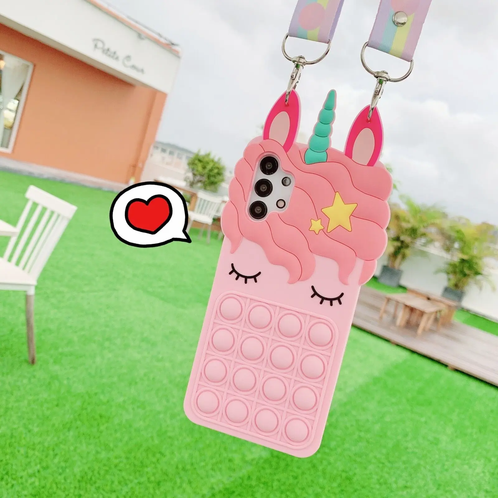 Силиконовый чехол с мультяшной лошадью для Xiaomi Redmi Note 8 9 10 9S 10S 10 Pro Max Redmi 9T 10X, снятие стресса, пузырьковый чехол со шнурком