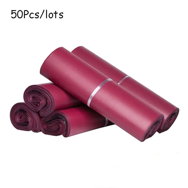50 шт./упак. PE почтовый конверт Упакованные мешоки коричневого красного цвета Поли Мейлер транспортировочный сумки Водонепроницаемый чехол утолщаются курьерские Сумки