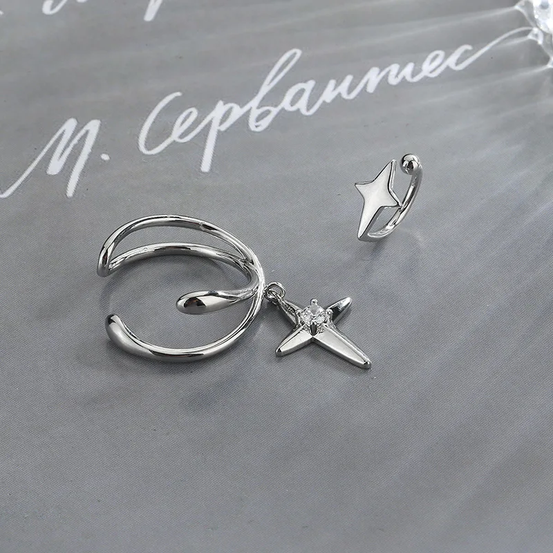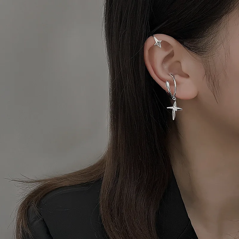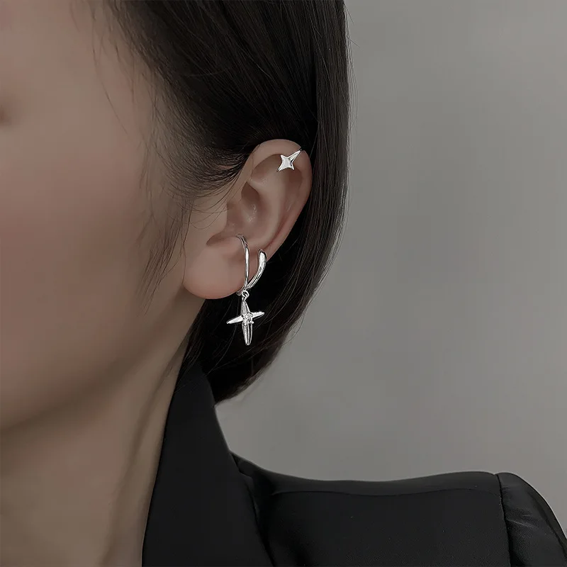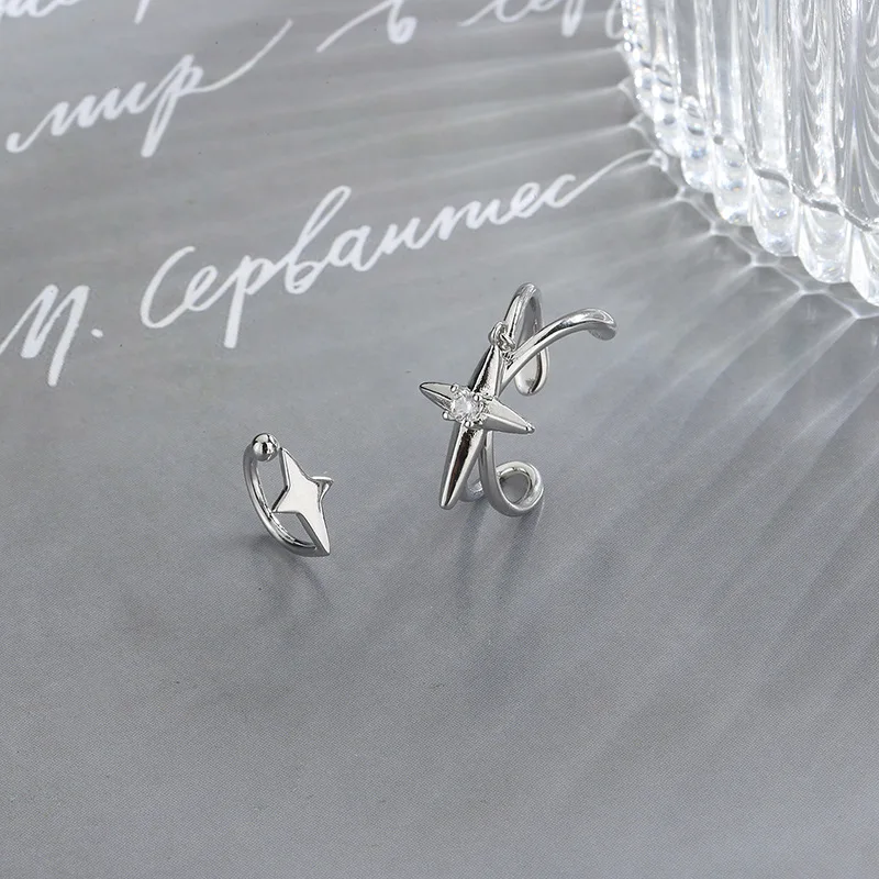 Женские серьги-клипсы с четырьмя звездами из серебра 925 пробы