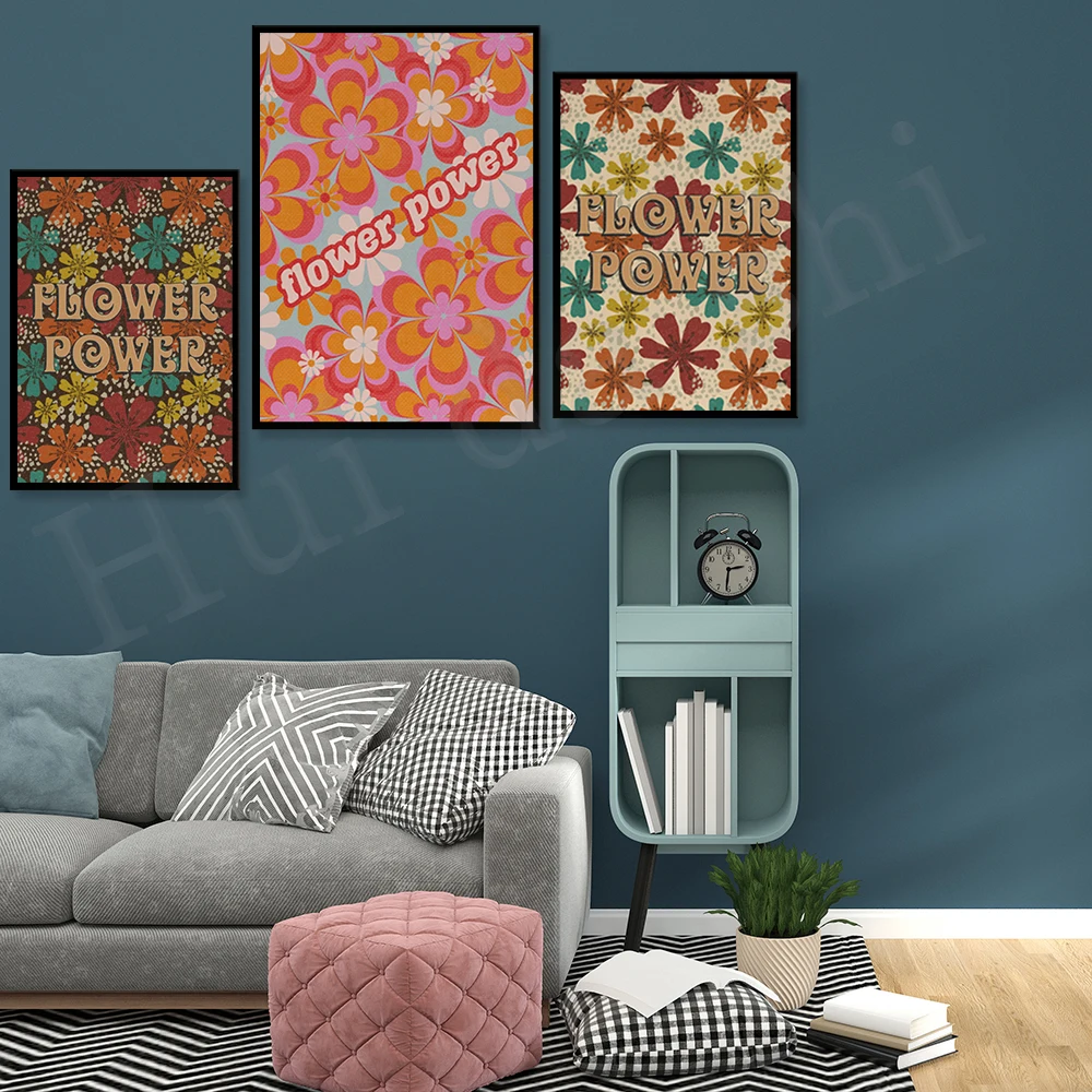 Цветочная энергия, цветочный принт 70s, Ретро Декор для дома, ВИНТАЖНЫЙ ПЛАКАТ, настенное искусство, настенное искусство в стиле бохо, декоративные принты в стиле бохо, 70s Vibes