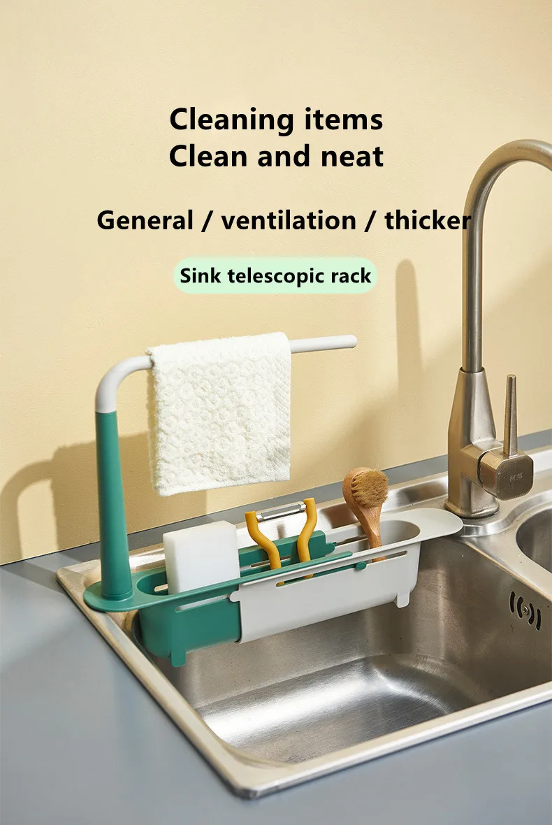 Кухонная телескопическая полка для раковины, органайзер для кухонных раковин, держатель для мыльного полотенца, губки, сливная полка, корзина для хранения, гаджеты, аксессуары