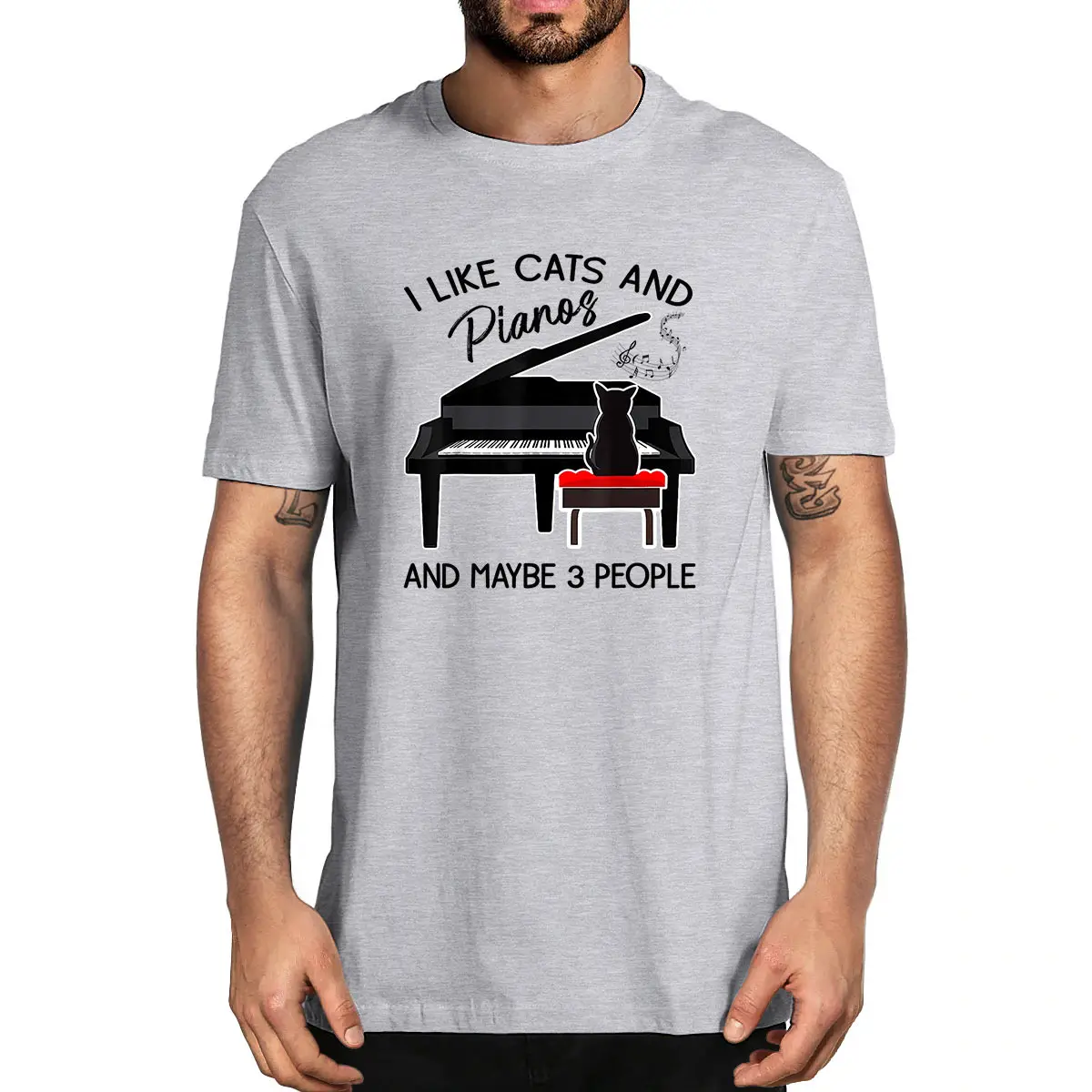 Забавная Летняя мужская футболка Я люблю кошек и пианино и может быть 3 человека из 100% хлопка, новинка, футболка оверсайз, Женская Повседневная Уличная одежда