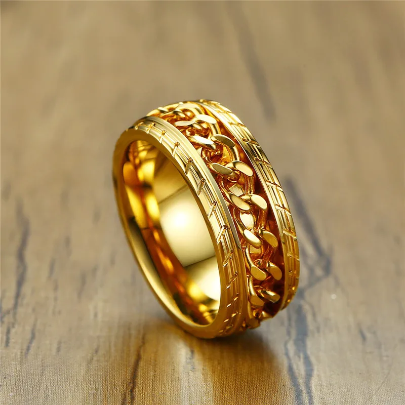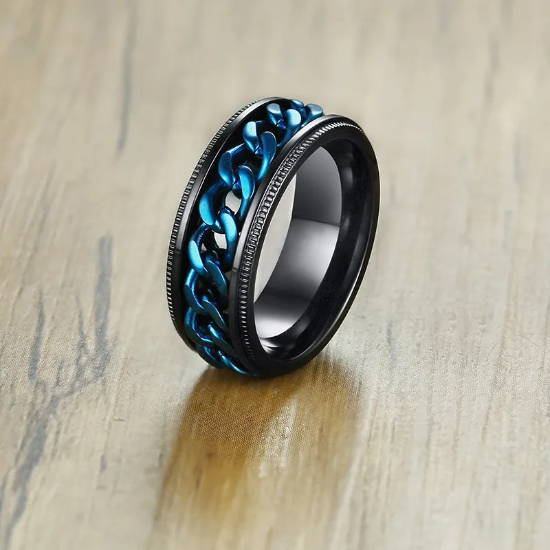 KOtik Новое модное черное вращающееся кольцо из нержавеющей стали для мужчин Высокая стандартная цепь в стиле панк винтажные мужские Ювелирные изделия Подарки вечерние Ринок