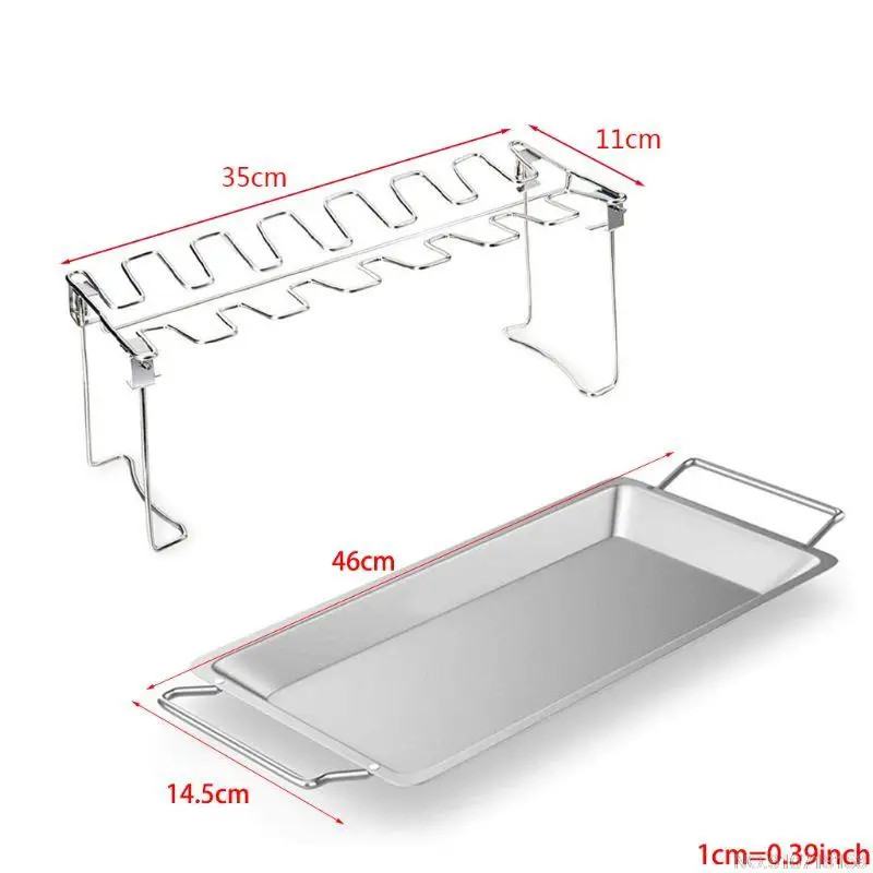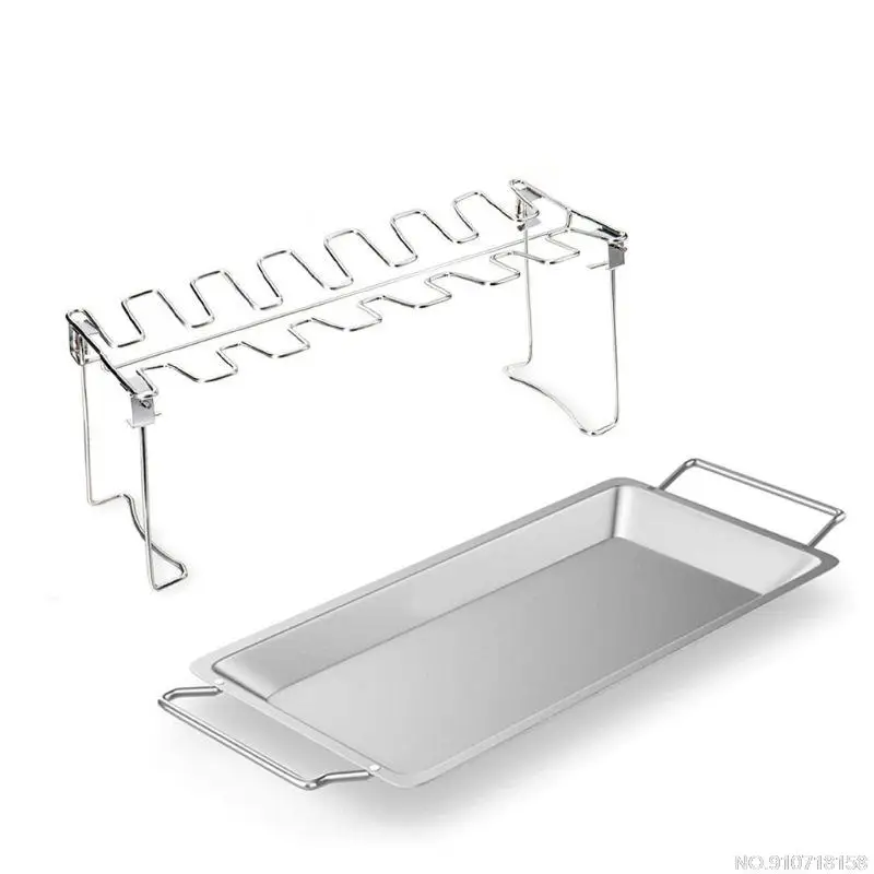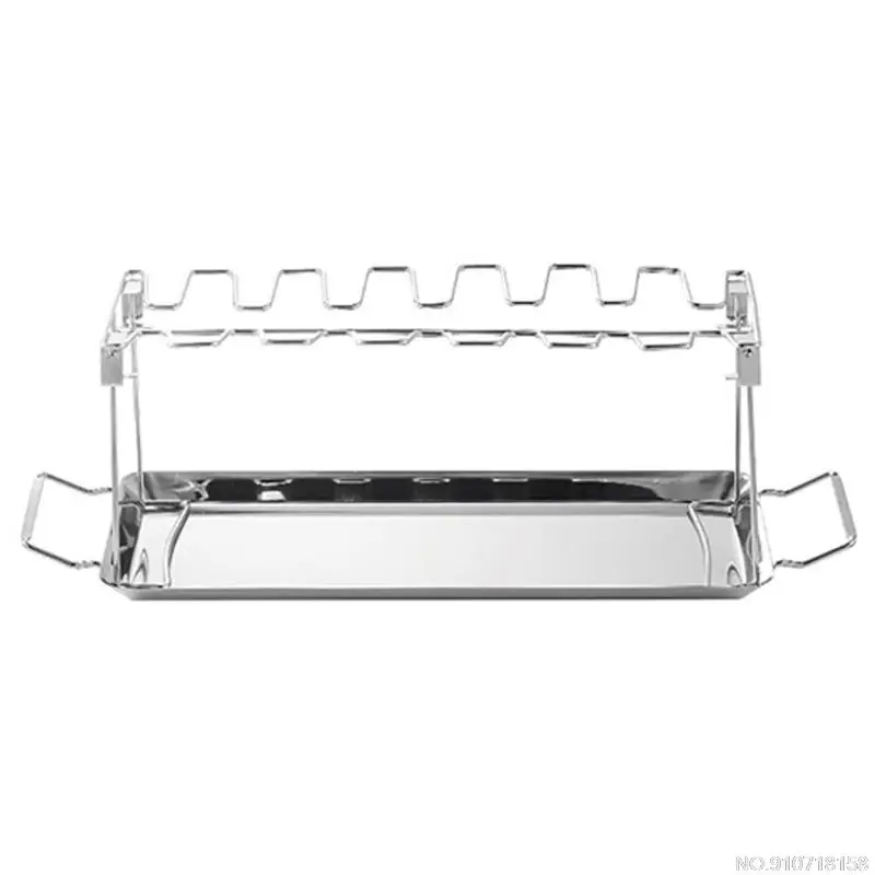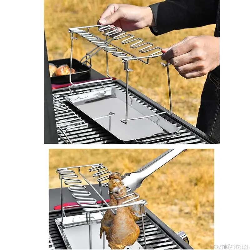 Складная подставка для барбекю, поднос из нержавеющей стали для жаровня, куриных крыльев, для гриля, с кастрюлей для барбекю S13 21
