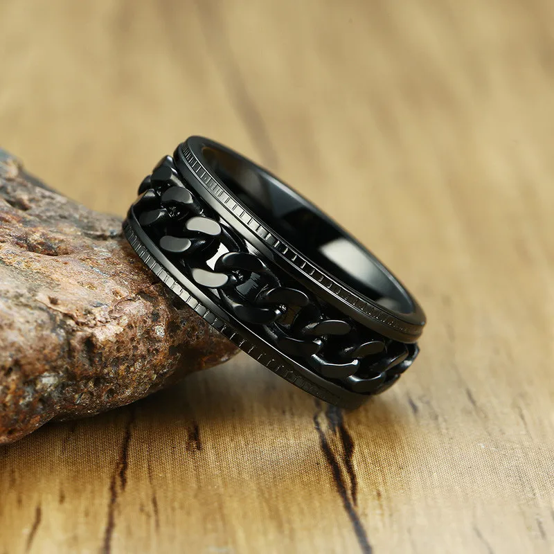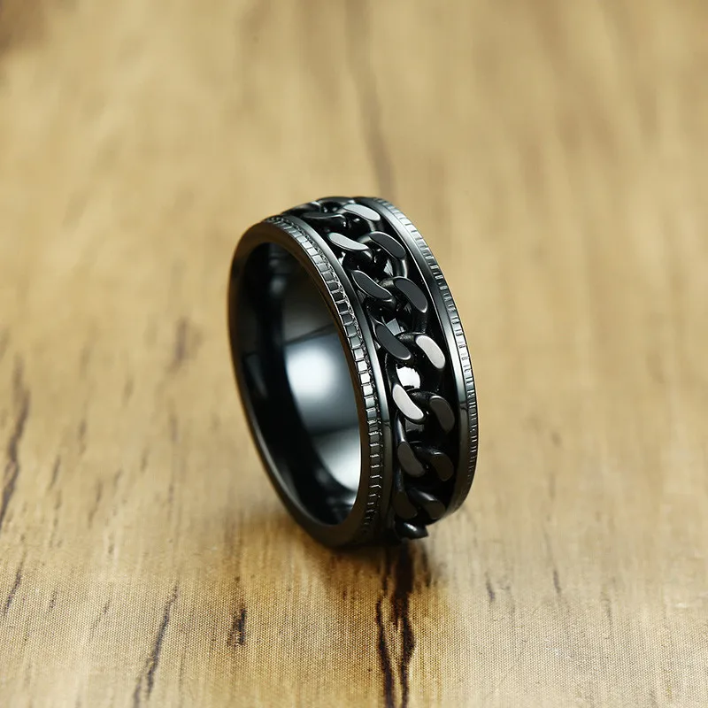 Новинка 2022, модное обручальное кольцо TOBILO с черной цепью для мужчин, винтажное ювелирное изделие на палец из нержавеющей стали в стиле панк, мужское вращающееся кольцо-цепочка