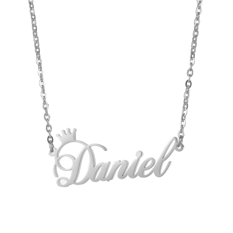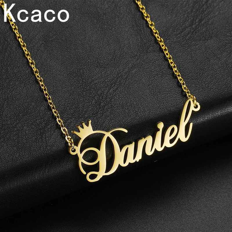 Kcaco, индивидуальное модное ожерелье из нержавеющей стали с именем, персонализированное золотое ожерелье с надписью и короной, подвеска с табличкой, подарок для женщин и мужчин