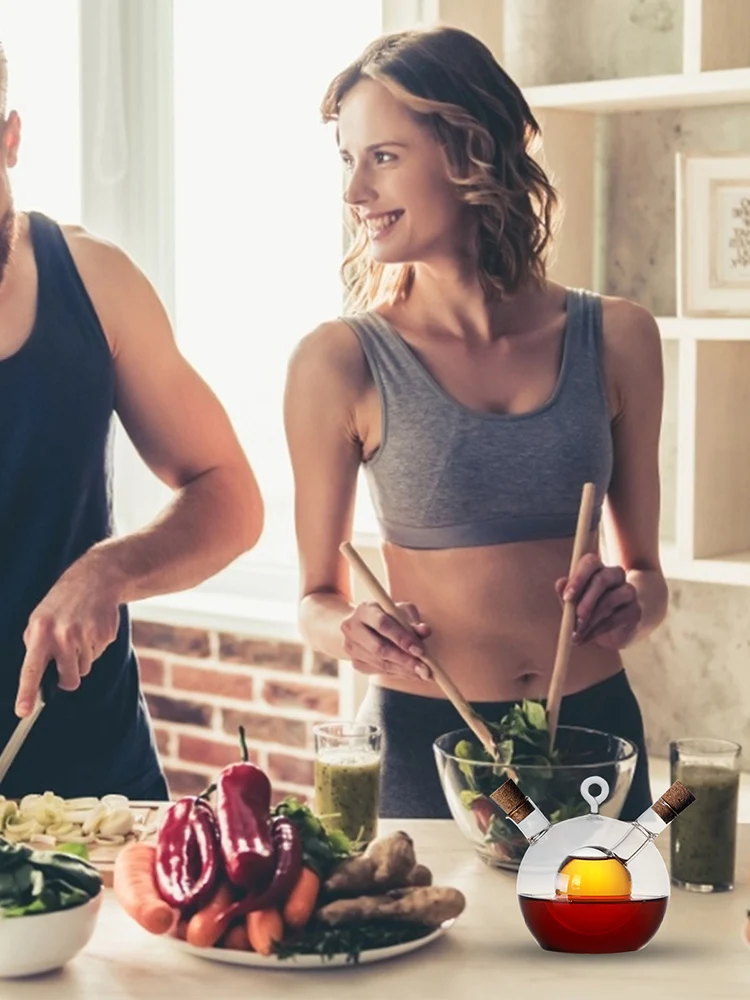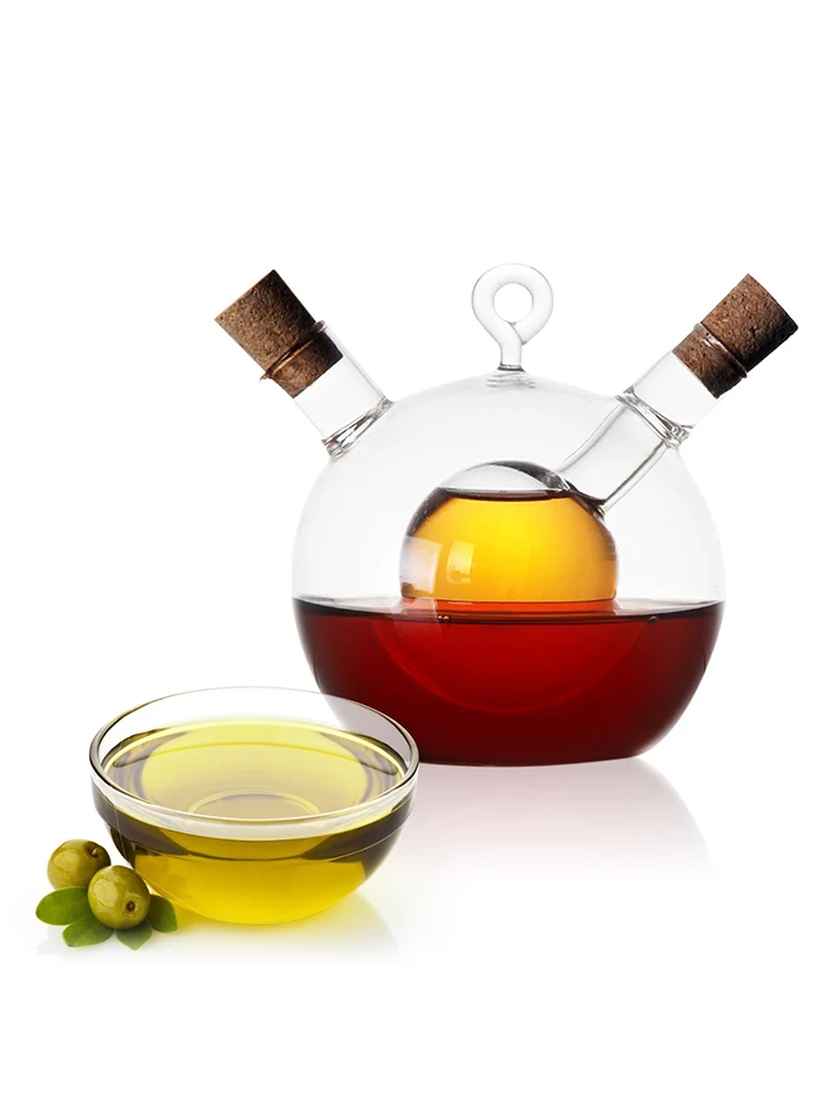 Характеристики:Название: 2-в-1 маслораспределительное устройствоМатериал: стеклоРазмеры: около 100*115 мм/3,94 * 4.53inЦвет: прозрачныйУпаковочный лист:1 * масляный дозатор