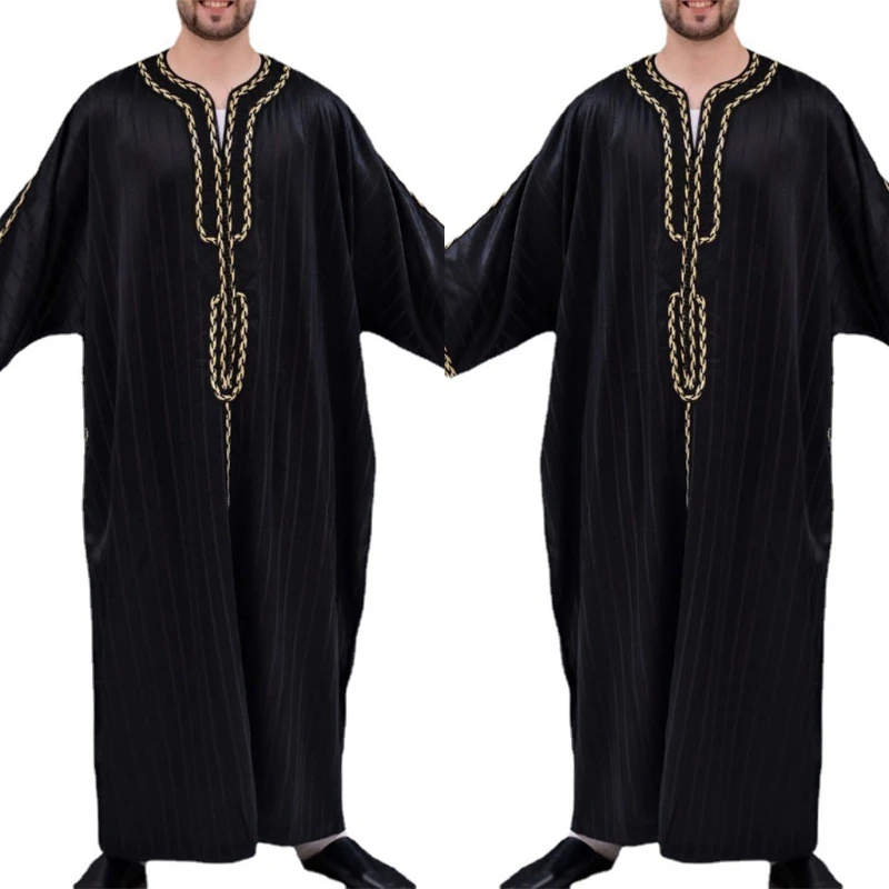 Мужская мусульманская одежда Abaya, черная полосатая одежда с принт...
