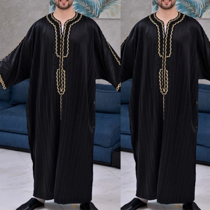 Мужской мусульманский кафтан с длинным рукавом в стиле ретро