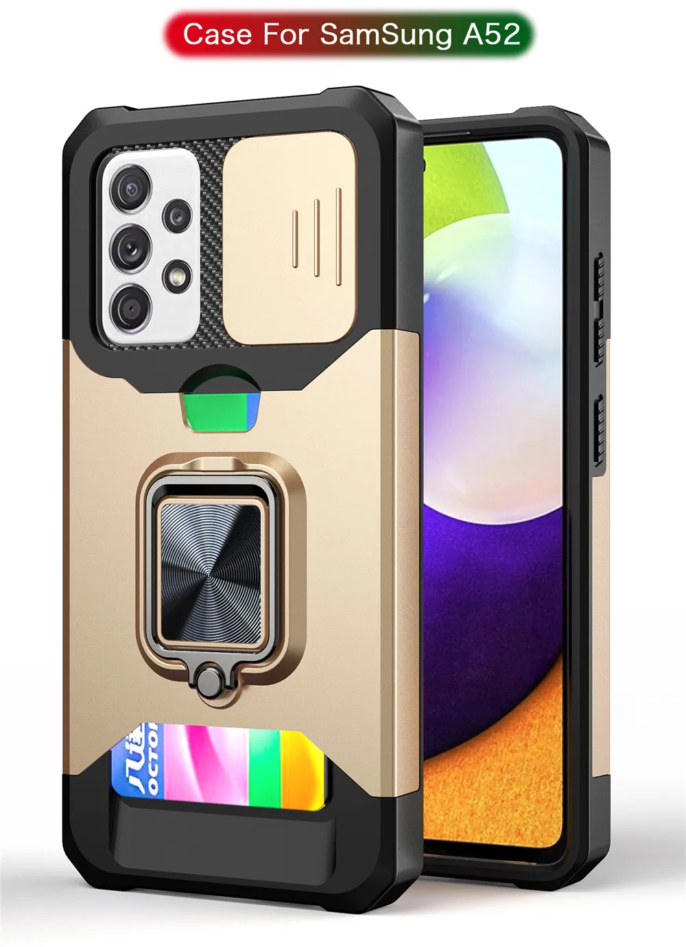 Чехол для Samsung Galaxy A52 5G 4G с отделением для карт, чехол с держателем для кольца на палец, чехол с подставкой для A72 4G, 5G, чехол, бампер, чехол