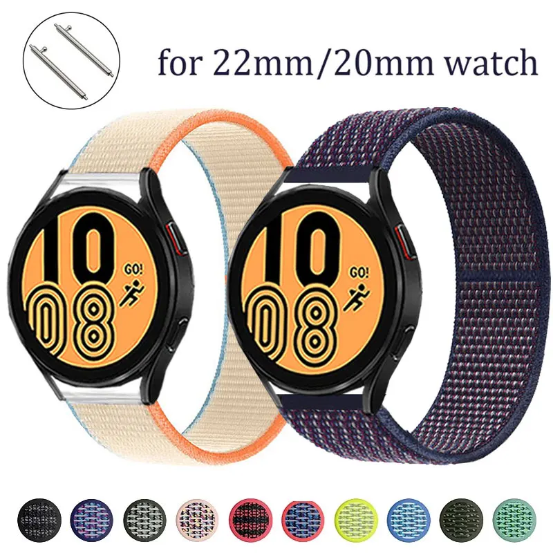 Ремешок нейлоновый для Samsung Active 2, браслет для Galaxy watch 4 3 4145 мм Gear s3 46 мм, Huawei watch GT2, 20 мм 22 мм