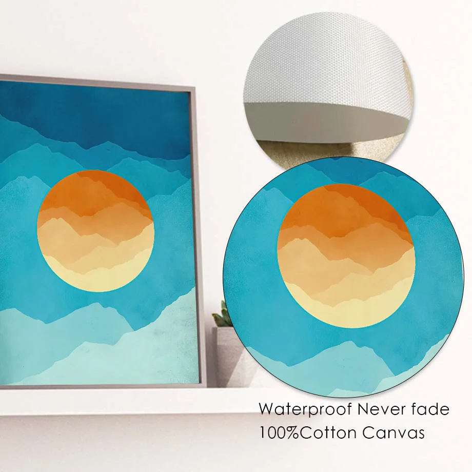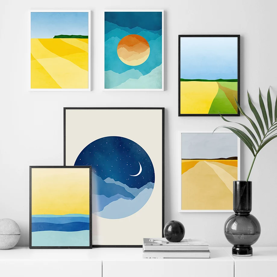 Желтая синяя Солнце Луна прерий море абстрактная настенная Картина на холсте скандинавские постеры и принты настенные картины для декора гостиной