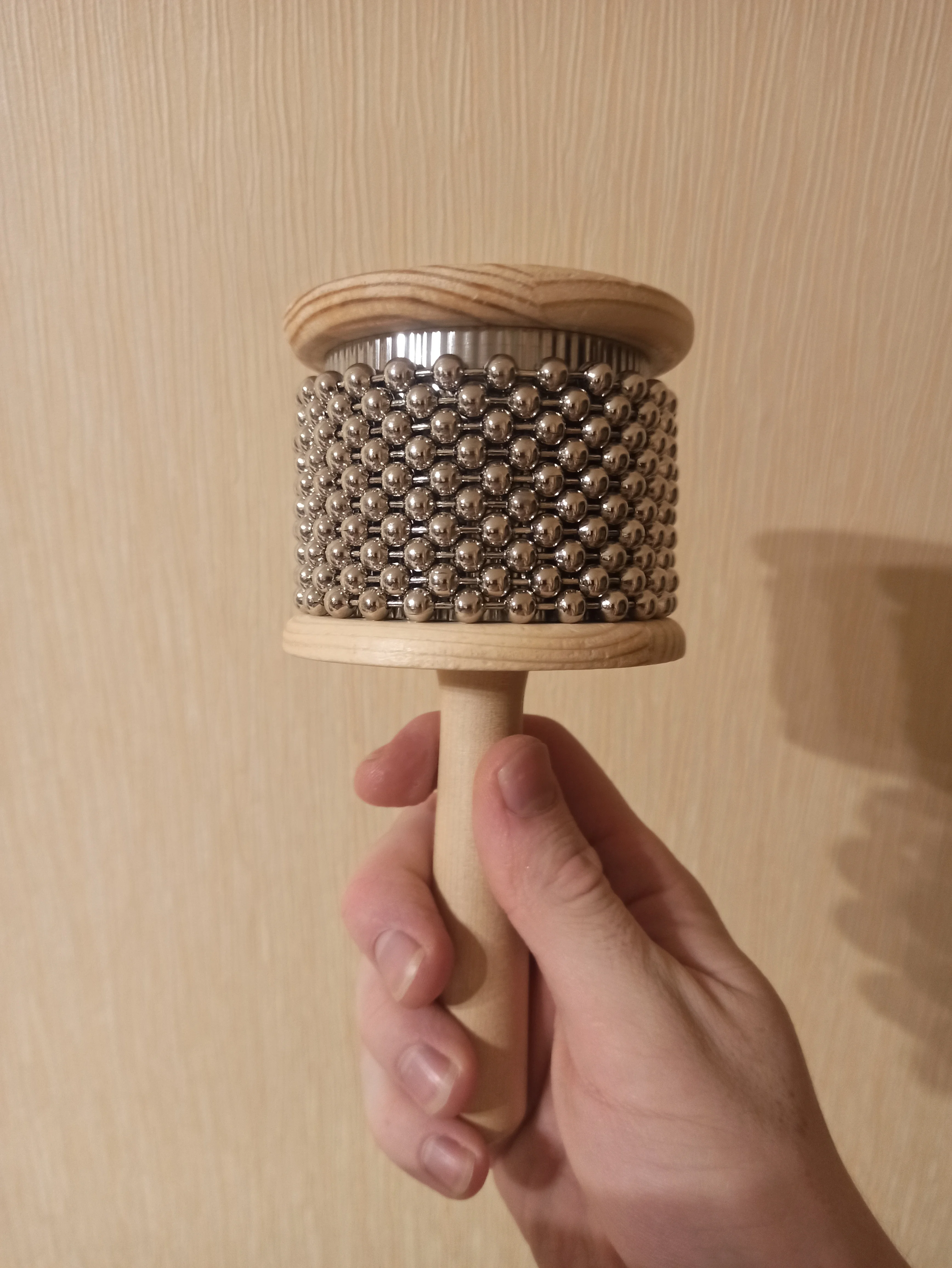Всё хорошо, дошла оочень быстро через сдэк. Брал большой размер, но он не такой, как на фото. Немножко расстроило, хотелось больше объема звука. В остальном - хорошо. Звучит неплохо, но не как профессиональные кабасы с ю-туба) В любом случае, спасибо продавцу, в отношении цены это лучшее предложение сейчас.