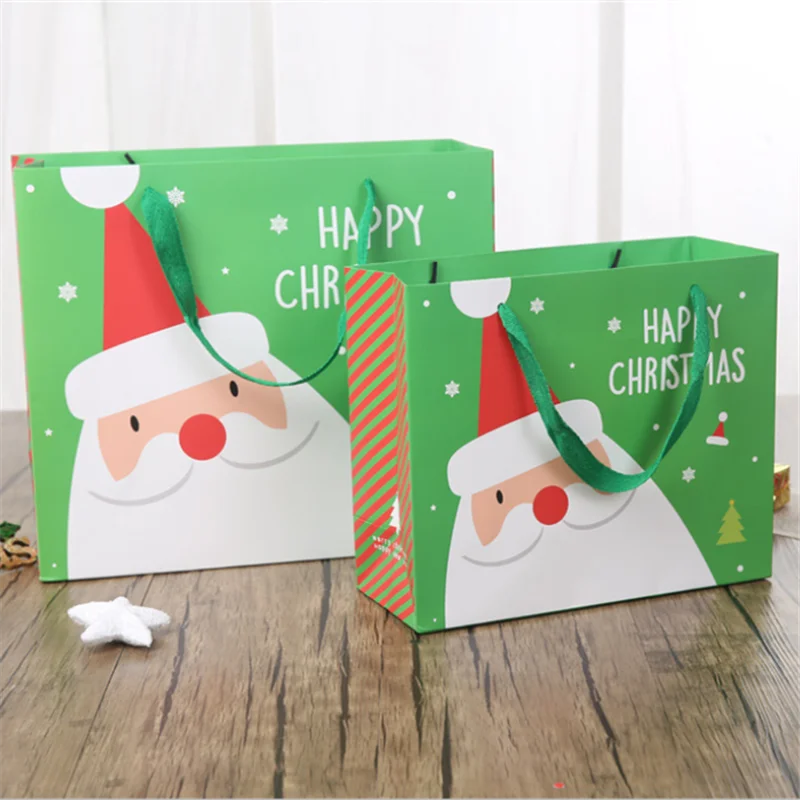 10 шт.лот Рождественская Корейская Подарочная сумка, мультяшная Рождественская сумка-тоут, большой размер, бумажный пакет для новогодних канун 31x12x27 см