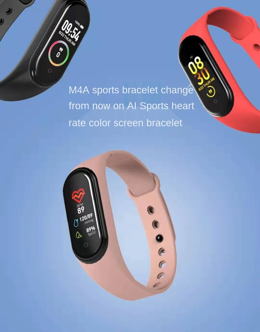 M4 смарт-браслет измерение артериального давленияпульсашагомер спор...