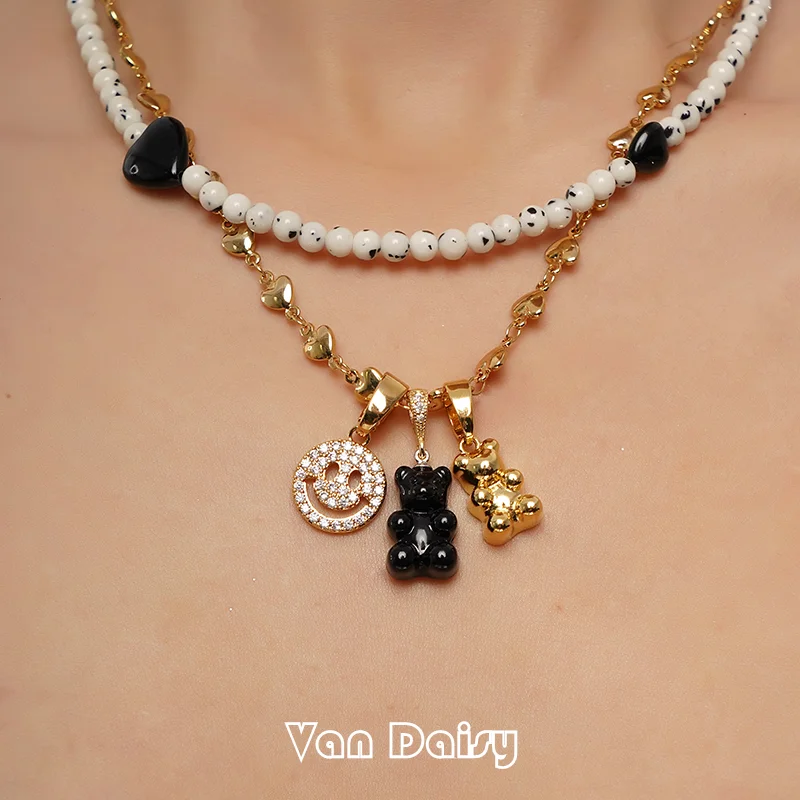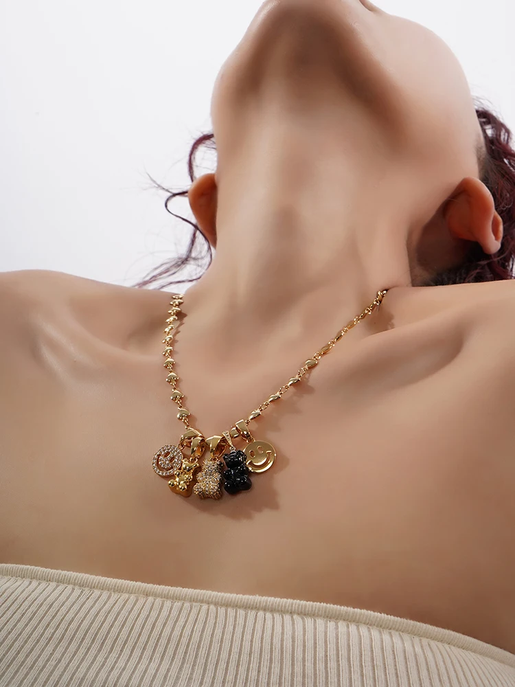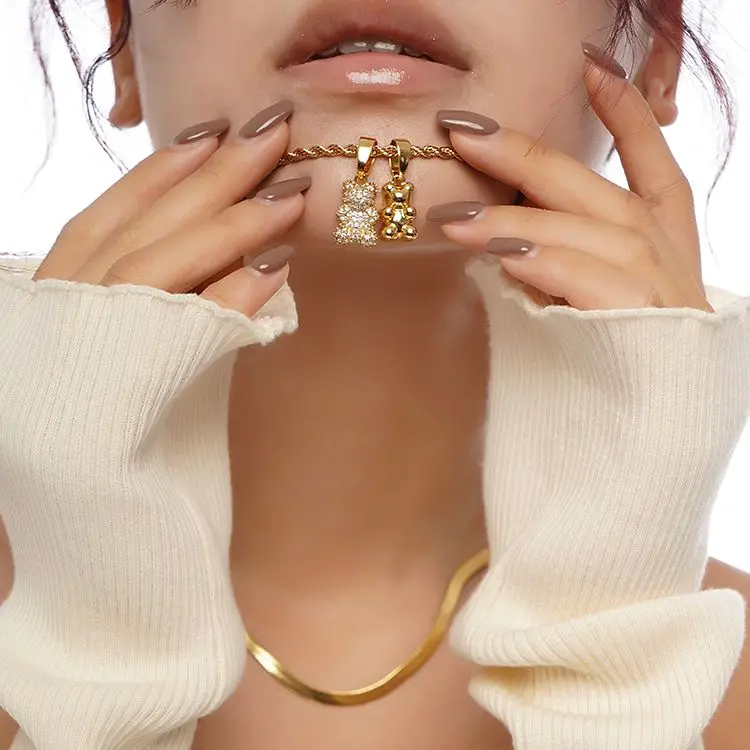 Ошейник с медведем из полимерной смолы, позолоченный, ожерелье со стразами