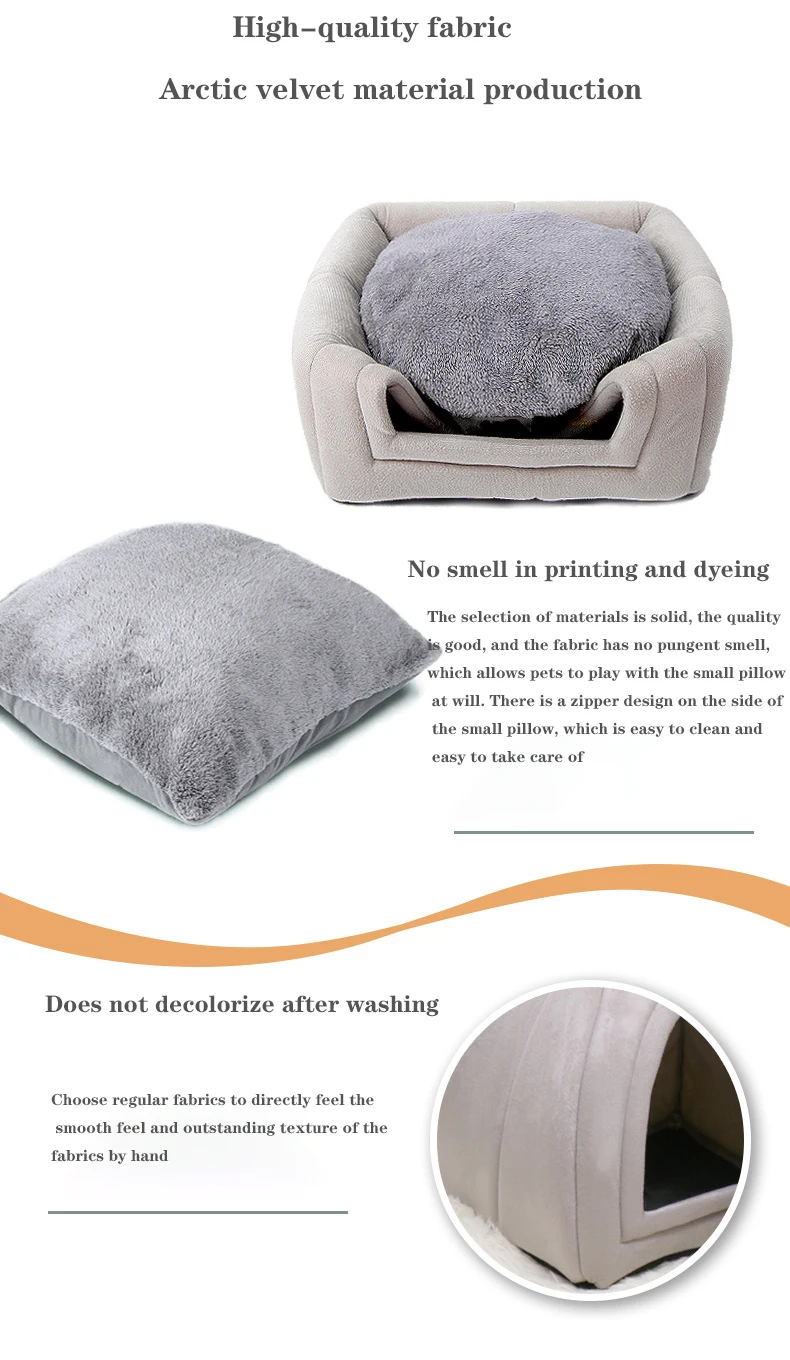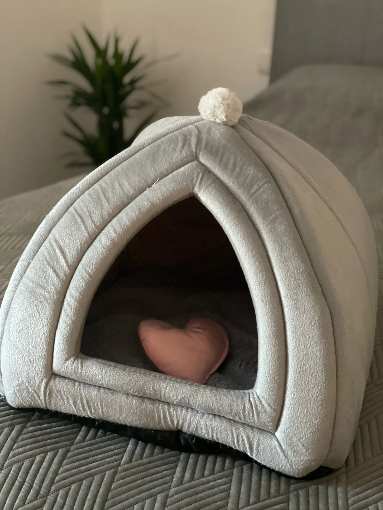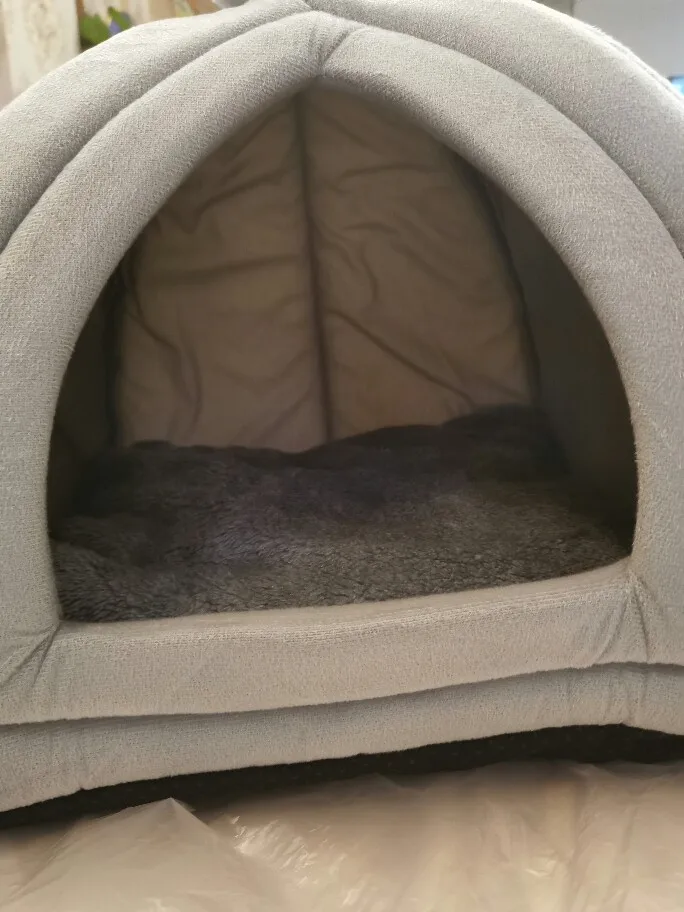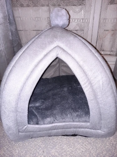 Великолепный домик для кошечки. Все сшито ровно, красиво, широкое спальное место, но не на полный рост взрослой кошки, цвет серый чистый, материал плюш, дно мякгое, подушка двухсторонняя с ворсом и безворсовая сторона, наполнитель подушки в дополнительном чехле, наволочку можно снять и постирать. Доставка в пределах срока. Продавец положил подарок-ошейник с колокольчиком☺️. Спасибо за товар.