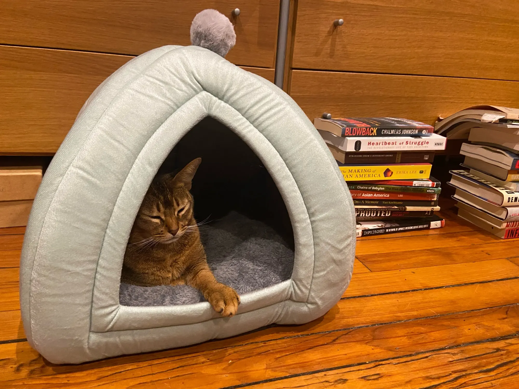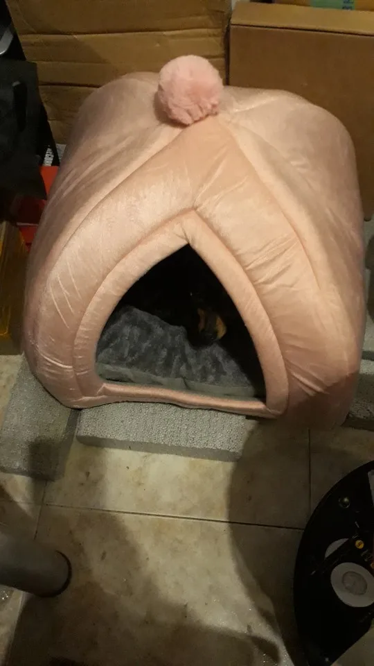 Единственный недостаток, который я поставил, это то, что внутри кажется, что подушка будет супер мягкой и пухленькой, но это не так, это супер крошечный, и кошка практически касается земли, когда я сплю. Размер довольно большой, мне это нравится.