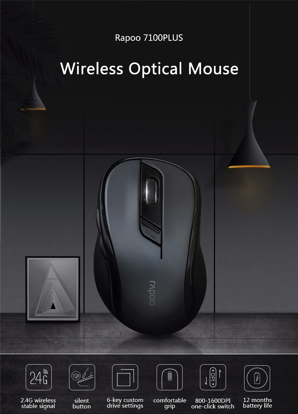 Беспроводная оптическая мышь Rapoo 7100PLUS, 2,4 ГГц, бесшумная, 1600DPI, для офиса, для ПК, ноутбука, компьютера