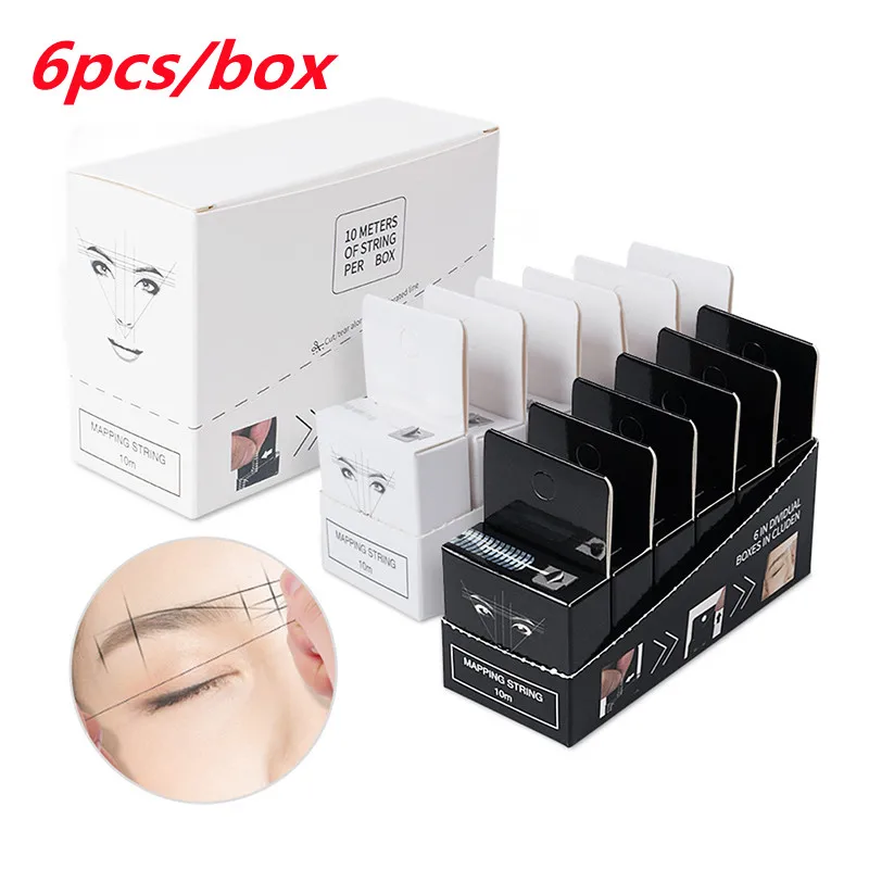 6 шт., БелыйЧерный микроблейдинг, картографическая струна, Перманентный макияж, предварительно обработанный маркер для бровей, нитка, инструмент для позиционирования бровей, аксессуары