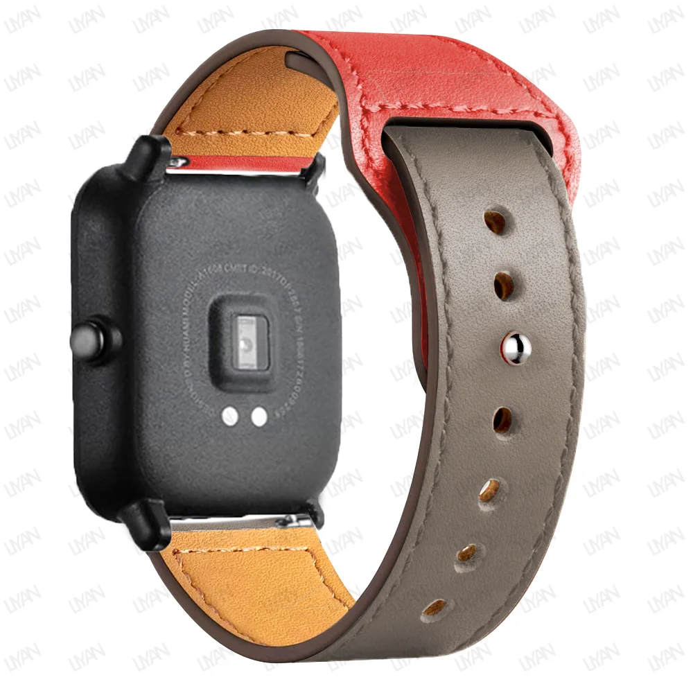 Ремешок кожаный для Amazfit GTS22eGTS2 MiniGTR 42 мм47 ммGTR22estratos 3, браслет для часов Amazfit bippace, 20 мм22 мм