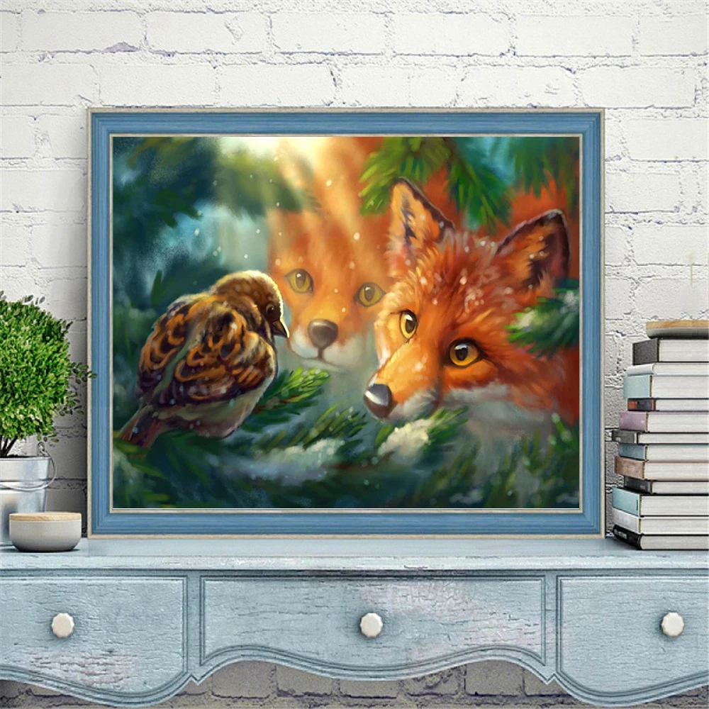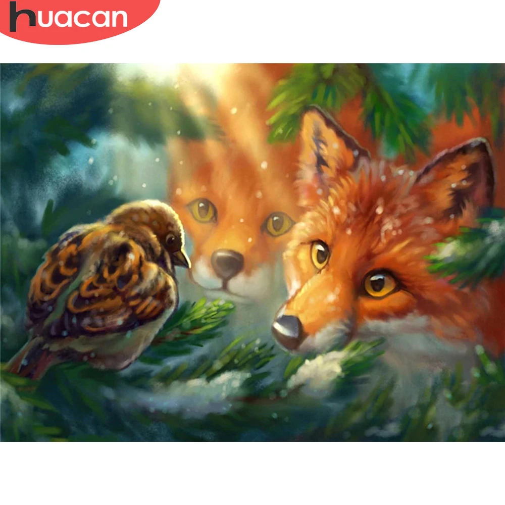 HUACAN картина по номеру лиса наборы для взрослых ручная роспись Сделай Сам картина по номеру Птица Животное холст домашний декор зимний подарок