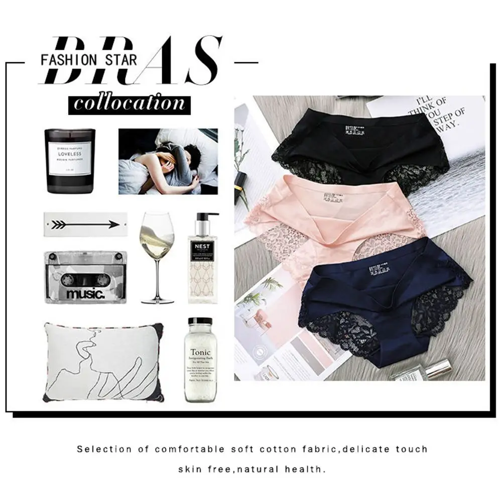 Женские трусики, кружевное нижнее белье, бесшовные трусики с низкой талией, атласные трусики