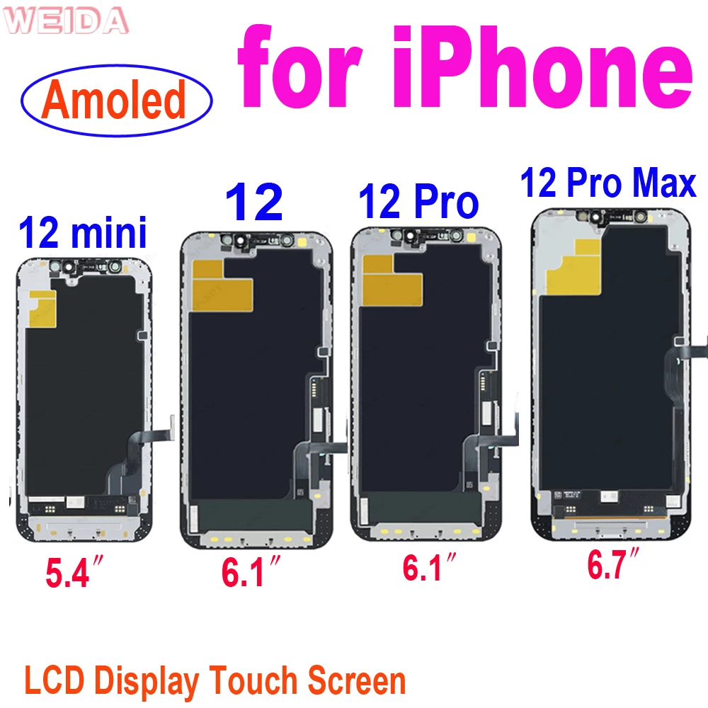 Супер AMOLED LCD для iPhone 12 iPhone 12 Mini iPhone 12 Pro iPhone 12 Pro Max ЖК-дисплей сенсорный экран дигитайзер сборка Замена