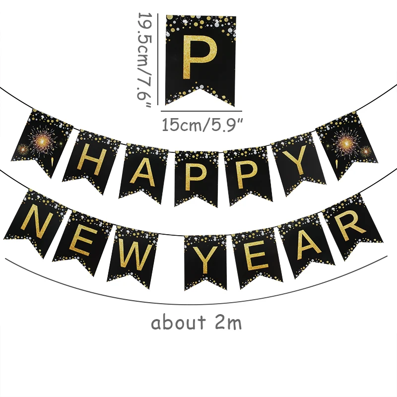 Бумажный баннер на новый год 2021, гирлянды, тарелки, чашки, бумажн...