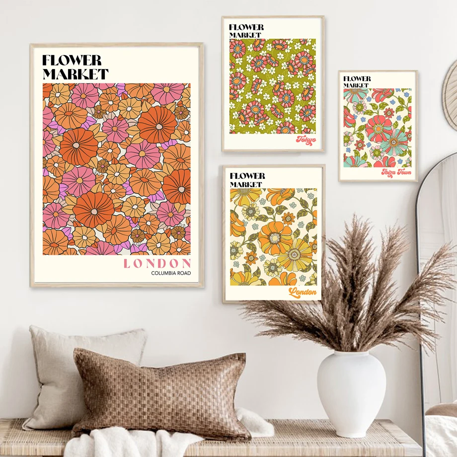 Абстрактный Цветочный рынок винтажные настенные картины на холсте с...