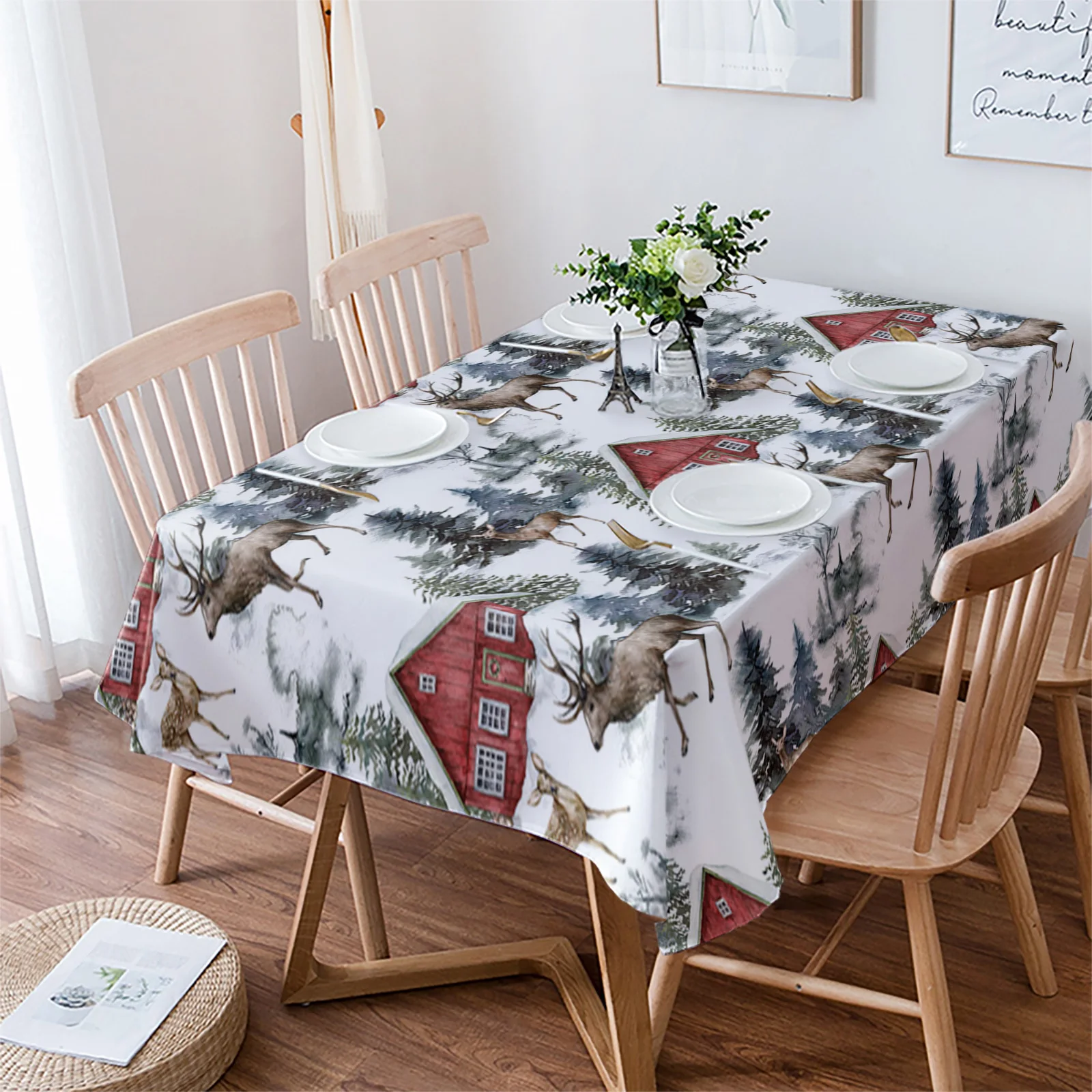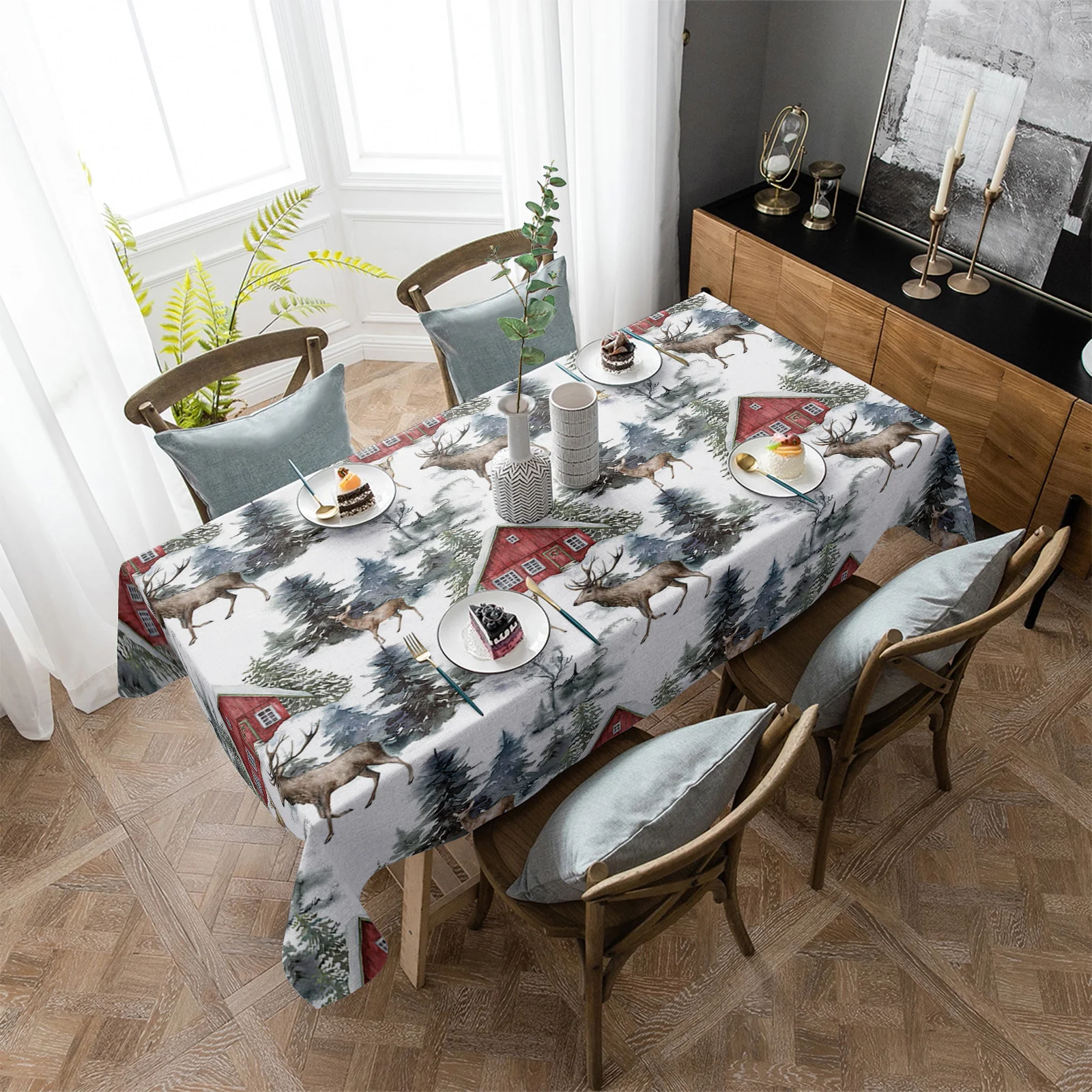 Рождественская иллюстрация лося, скатерть для свадебной вечеринки, ...