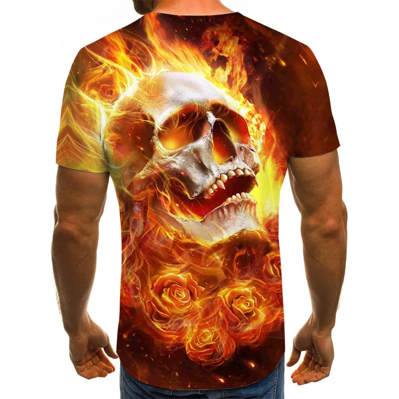 Новинка 2021, ужасная Мужская футболка, летние модные топы, футболка с объемным изображением черепа и демона, Мужская О-рубашка, женская уличная одежда