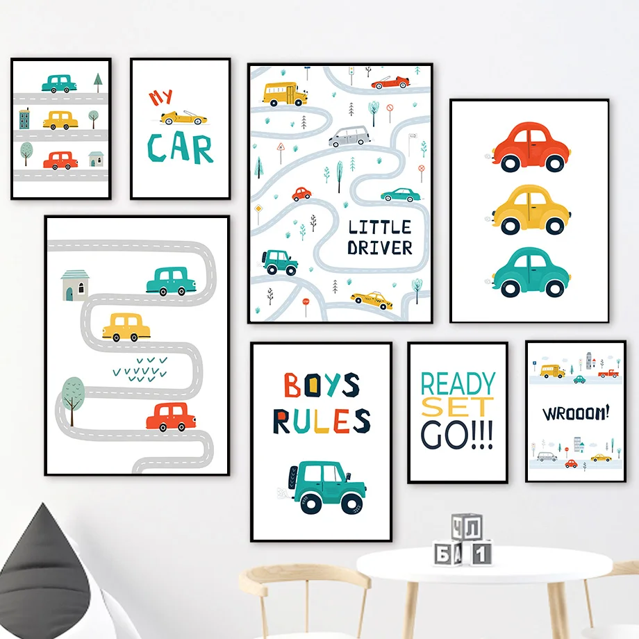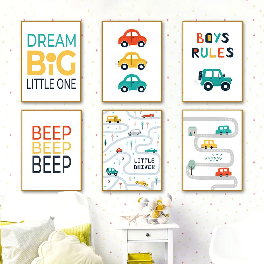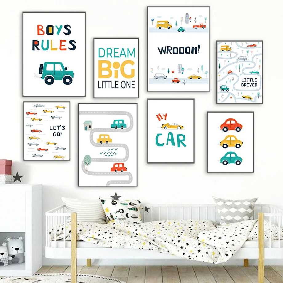 Инженерный автомобиль Алфавит Номер детской стены Искусство Холст К...