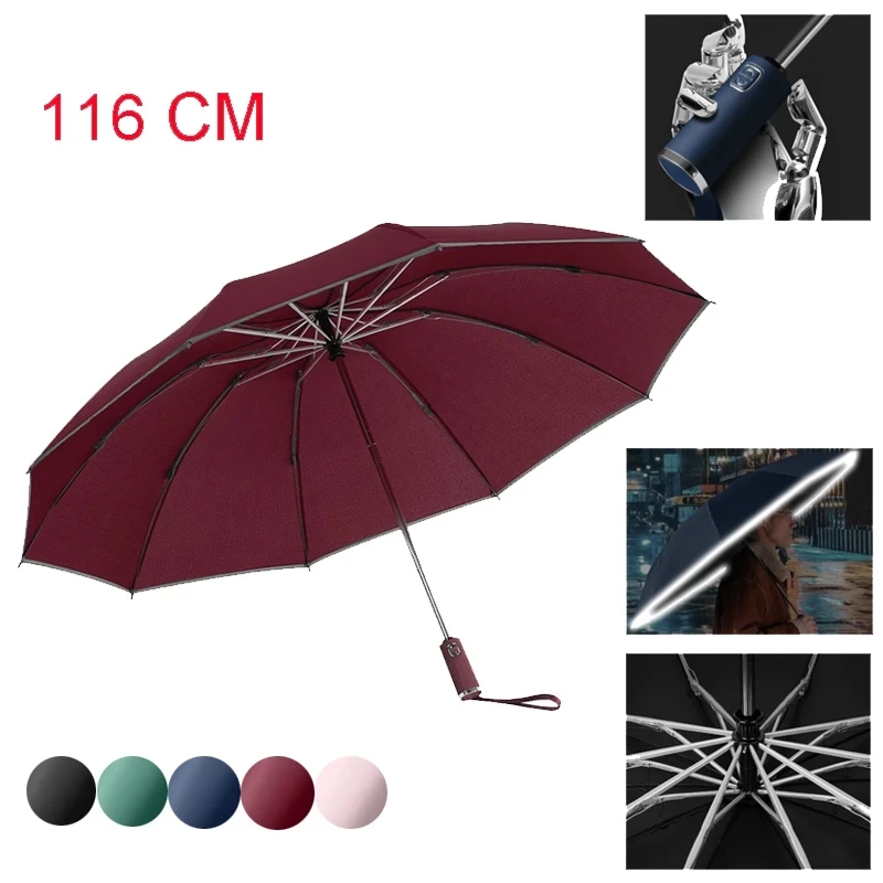 Полностью автоматический складной зонт заднего вида, зонты для защиты от дождя и солнечного автомобиля, Ветрозащитный Зонт с 10 косточками для женщин и мужчин