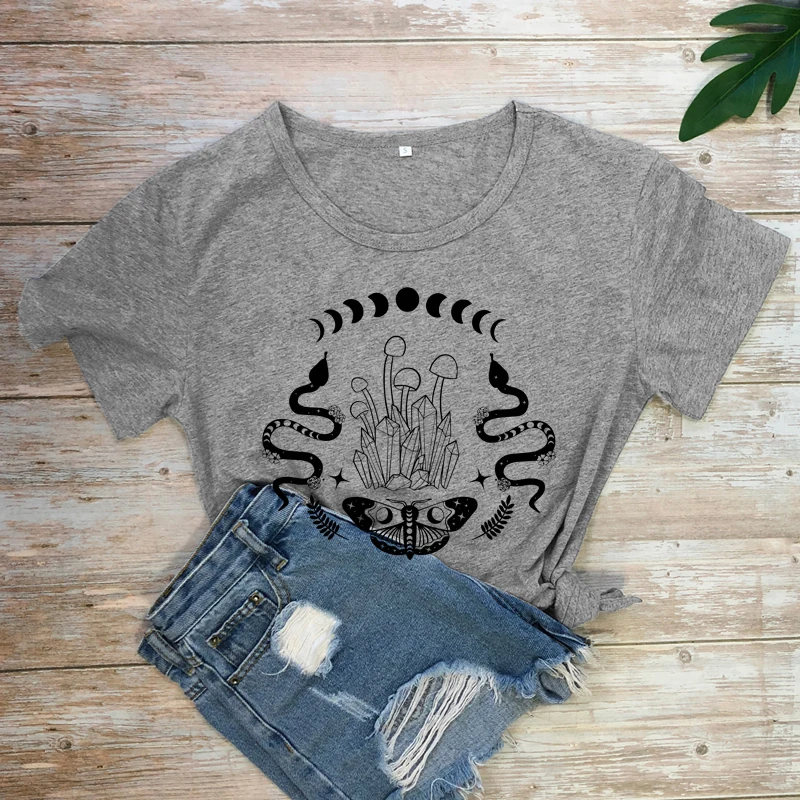 Футболка женская с рисунком ведьмы, мистическая рубашка с изображен...