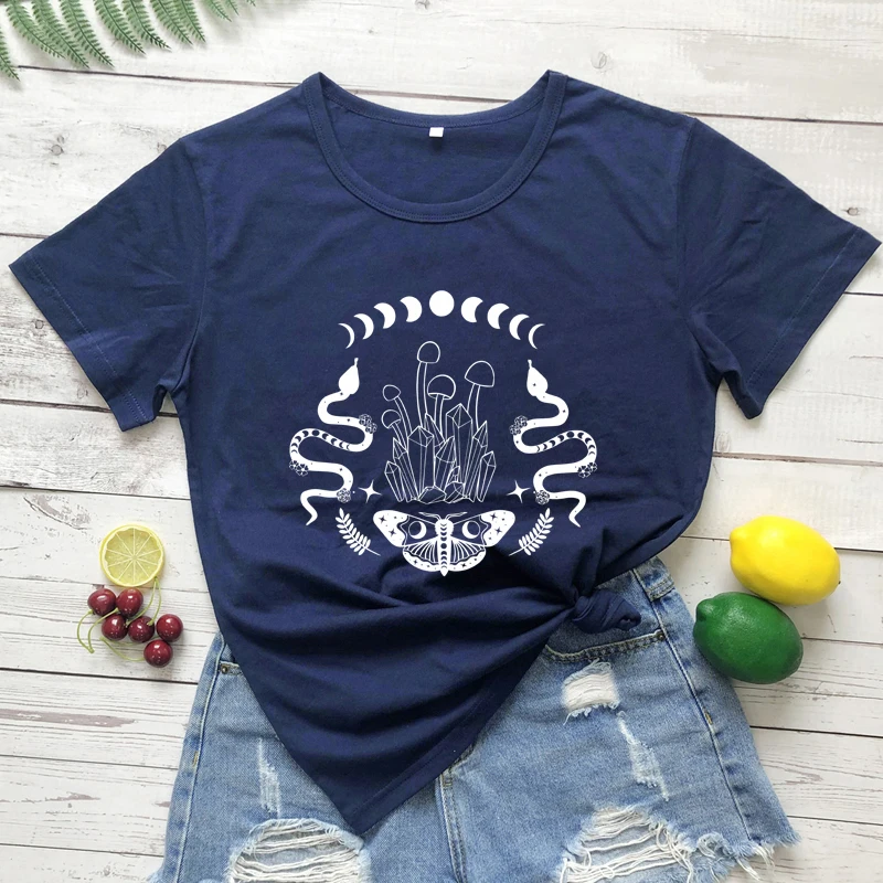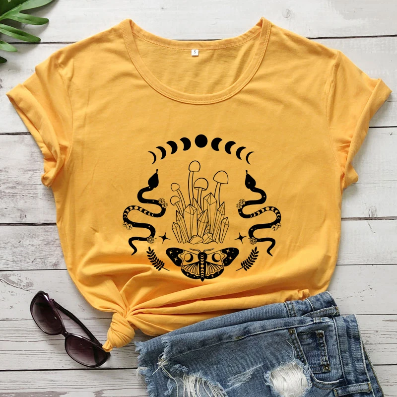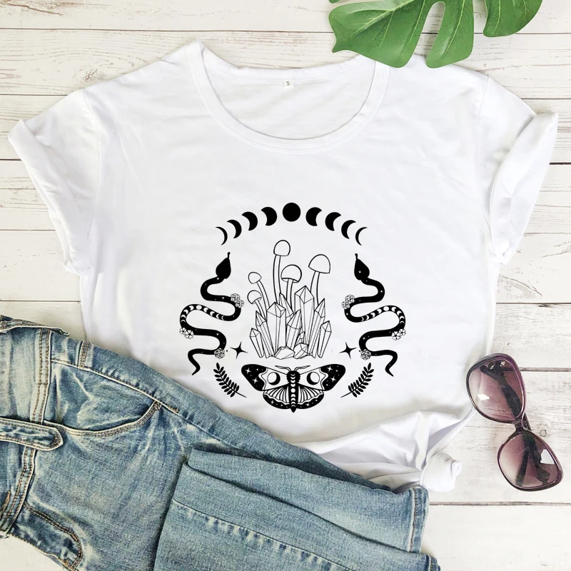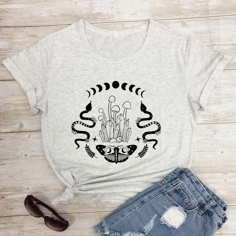 Футболка с мистическими пчелами, фазами луны, эстетическая женская ...