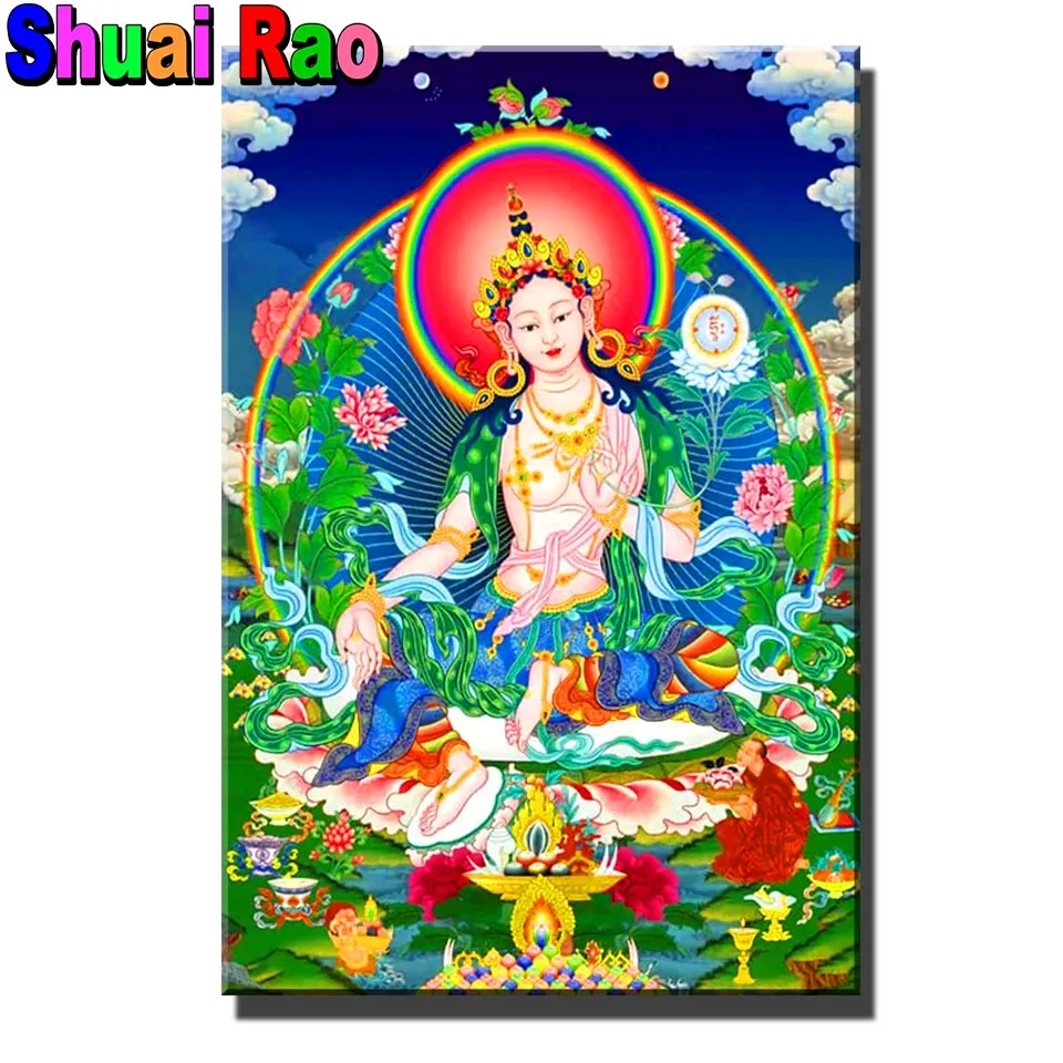 Гуаньинь тибетский Будда, сделай сам Алмазная вышивка крестиком полный квадратный круглый религиозный значок 5d алмазная вышивка мозаика полное сверло