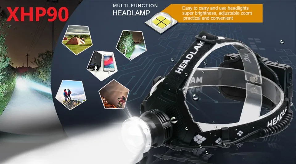 Супер XHP199 Мощный светодиодный налобный фонарь, перезаряжаемый налобный фонарь XHP160 XHP90, мощный налобный фонарь 18650, рыболовные фонари