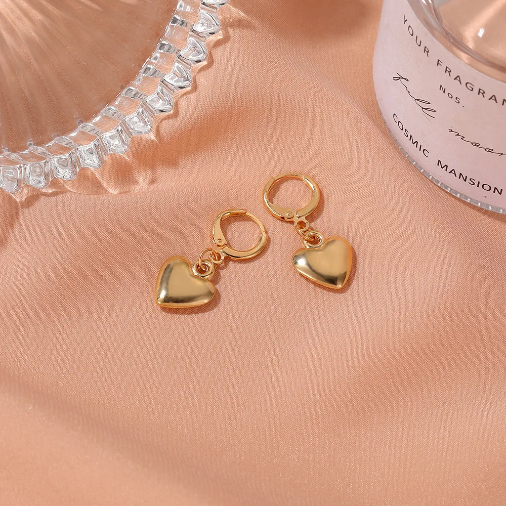 Простые зеркальные серьги, маленькие трехмерные серьги-подвески в виде сердца, женские металлические серьги в форме сердца, модные ювелирные изделия