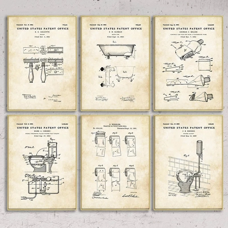 Туалетная бумага с зубной пастой в промышленном стиле, патентный плакат, винтажная Печать на холсте, настенная живопись, Современное украшение для ванной комнаты