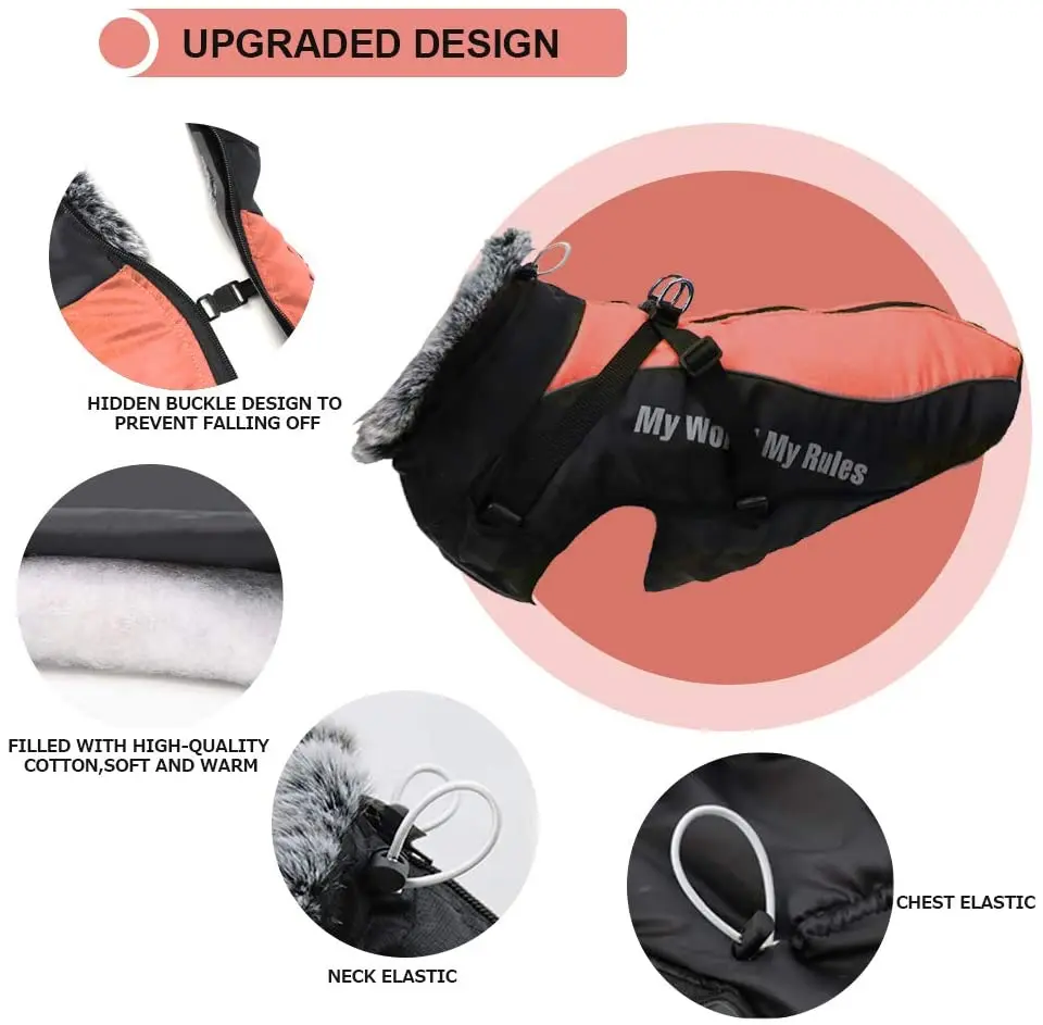 Водонепроницаемость и Светоотражающая-водонепроницаемая поверхность с теплой и толстой хлопковой внутренней поверхностью, сохраняет ваших питомцев в тепле зимой, зимой или под дождем. Светоотражающие элементы будут очень заметны в темноте, сохранят вашу собаку в безопасности ночью.