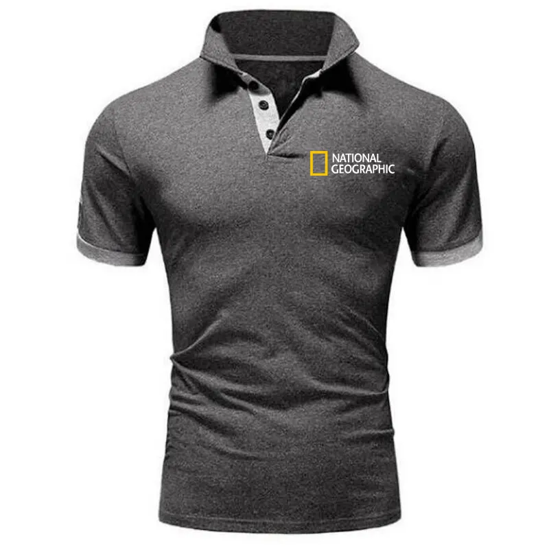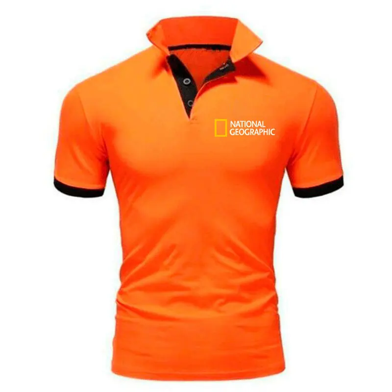 Мужская рубашка-поло с короткими рукавами, повседневная Однотонная рубашка-поло из полиэстера и хлопка, 2021