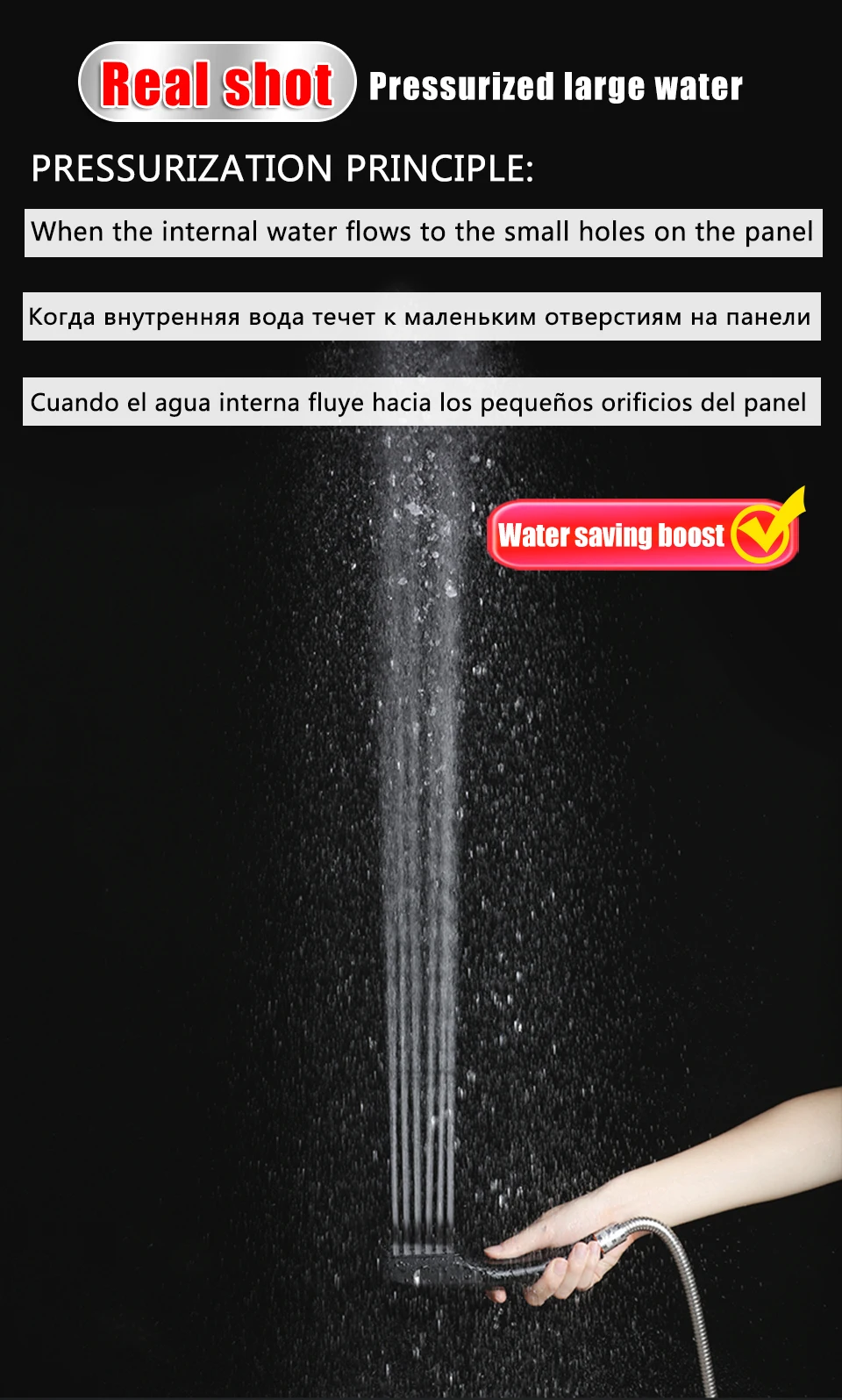 -Эта душевая головка разработана с функцией повышения давления, вы можете наслаждаться хорошим временем принятия душа и эффективно экономить воду.