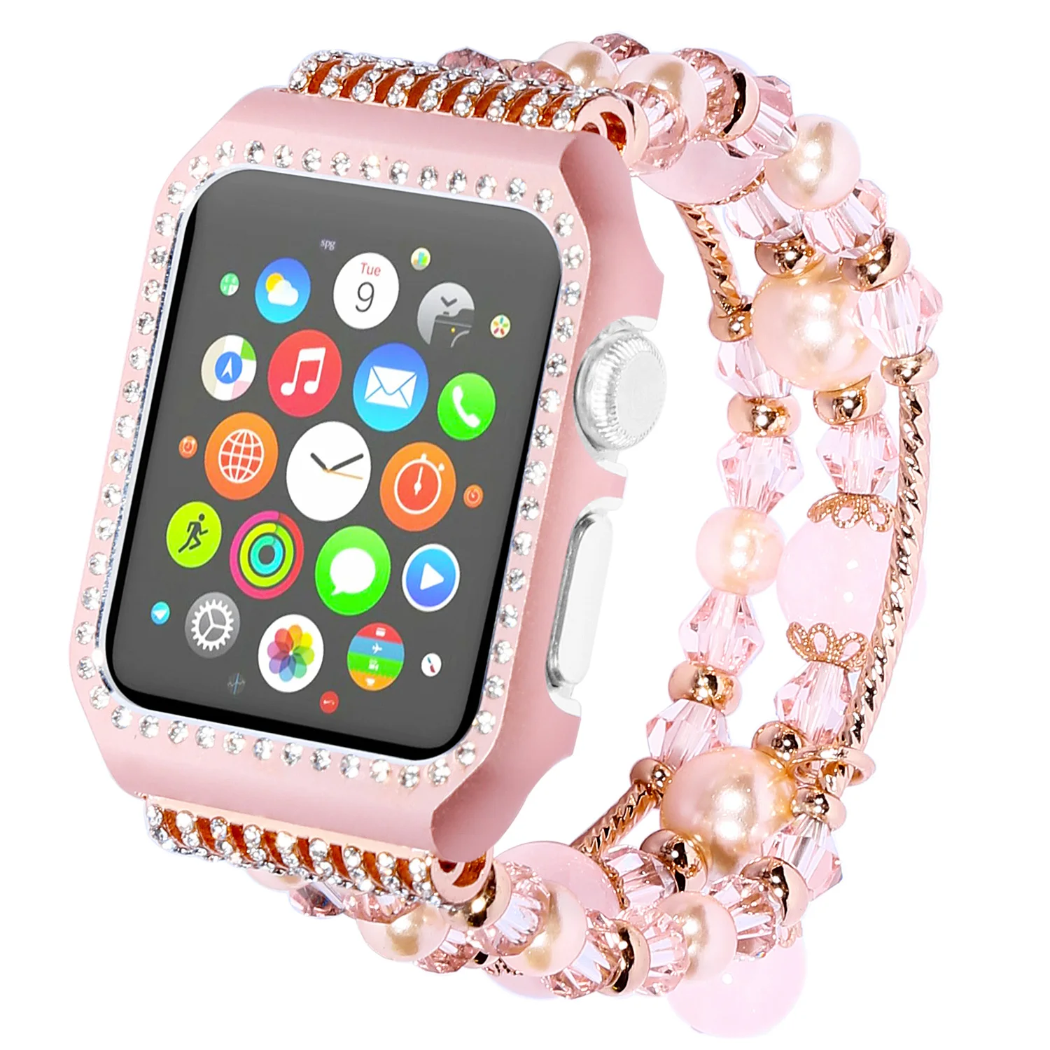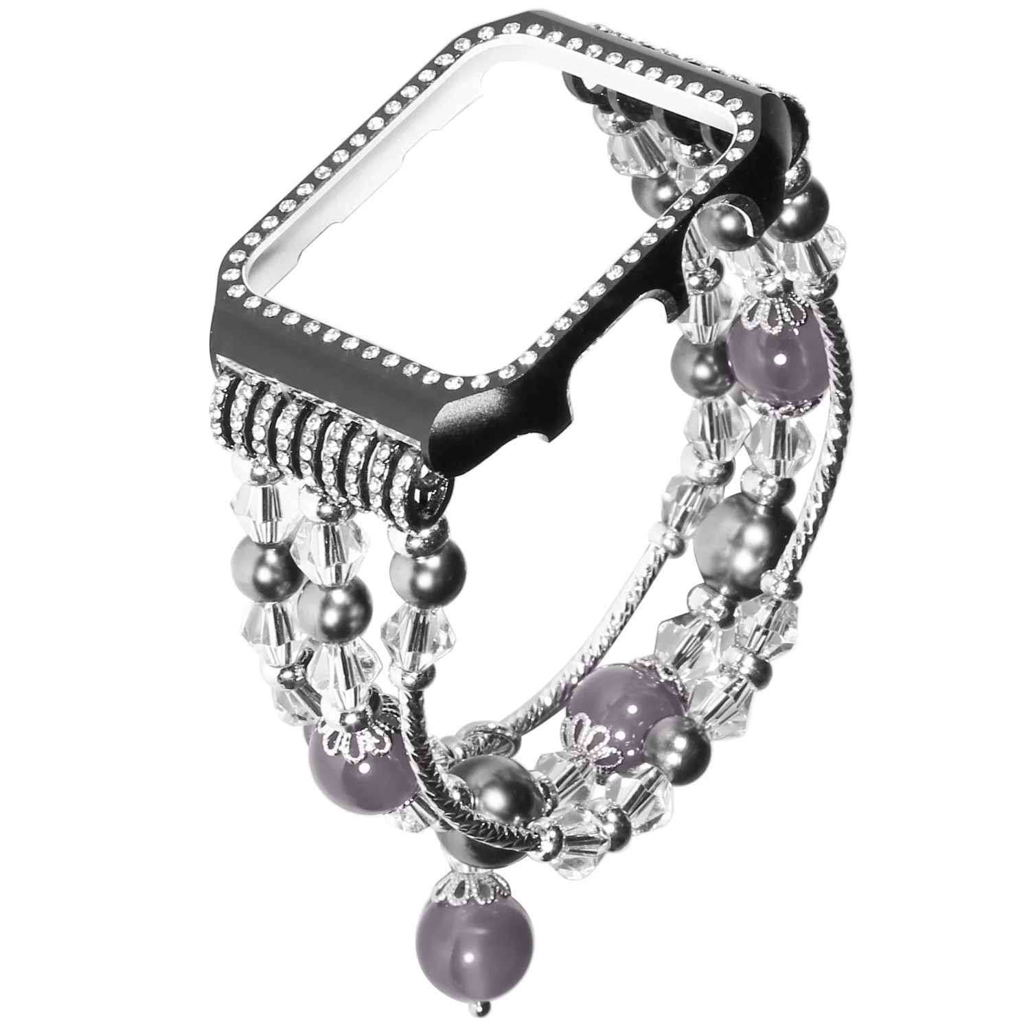Чехол и ремешок для Apple watch, 44 мм, 40 мм, серия 6, 5, 4, SE, защитный чехол с алмазной инкрустацией для iwatch 3, 2, 1, 42 мм, 38 мм, ремешок из агата