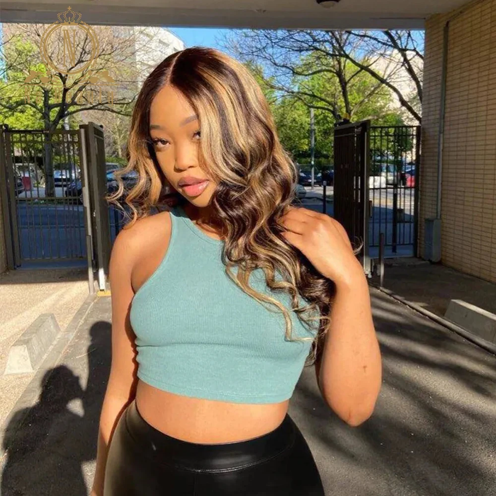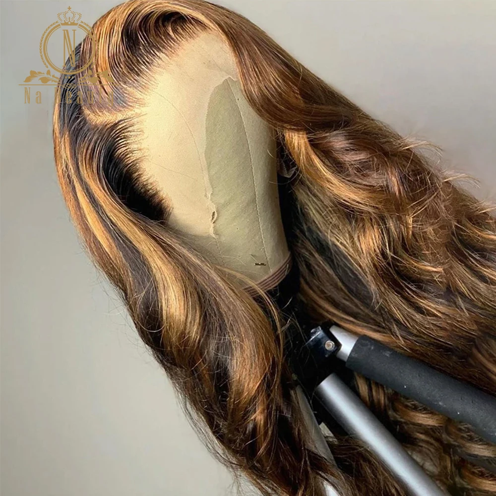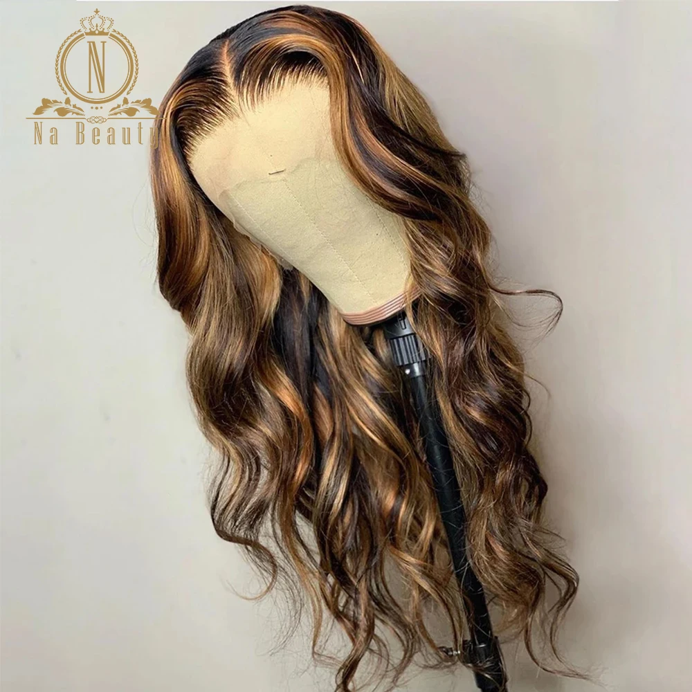 Черный с коричневым хайлайтером парик 13x 6 кружевной передний парик из человеческих волос прозрачный кружевной парик волнистый для черных женщин Nabeauty Remy 180