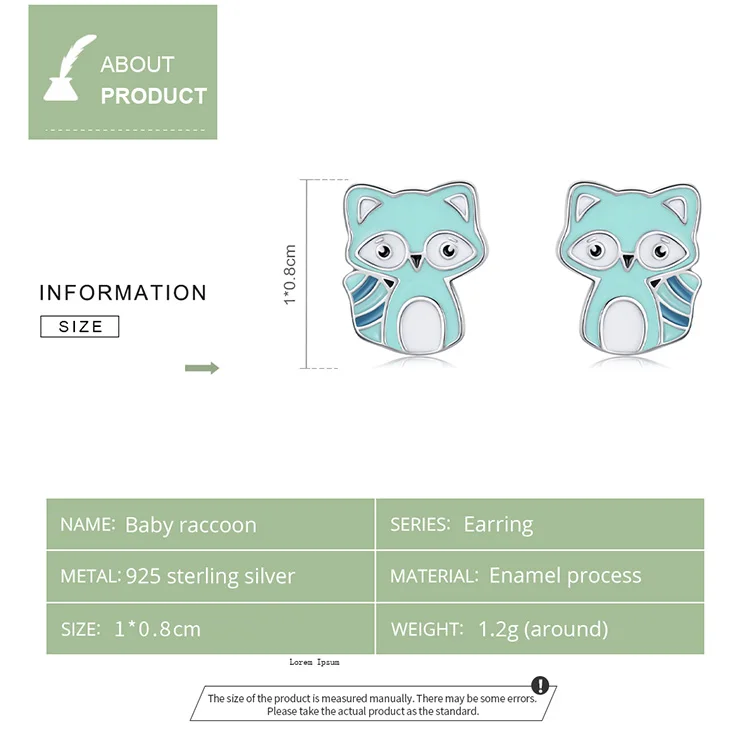❤【Описание】 Вдохновленный животными, ребенок енот капает с Мятным зеленым маслом освежает и мило; Креативный дизайн добавляет веселья и моды в наряд.❤【Спецификация 】 Размер: 1*0,8 см; Вес: 1,2 г.❤【Материал】 925 Стерлинговое Серебро и эмаль процесс и оксидированное серебро, инкрустированные круглой огранкой кубического циркония полированные для яркого блеска, как бриллианты. Уникальный дизайн делает ваш повседневный образ от Тонкого мерцания до полного блеска.❤【На подарок 】 1 пара сережек и 1 шт. Изысканная Подарочная коробка, которая является идеальным подарком для мамы, дочки, правки, тети, сестер, друзей.