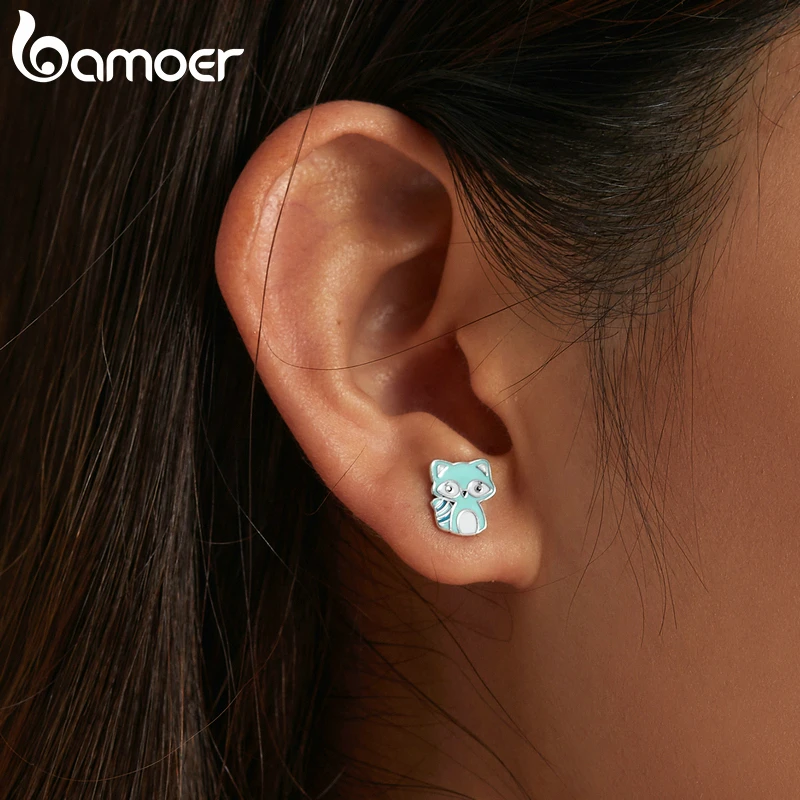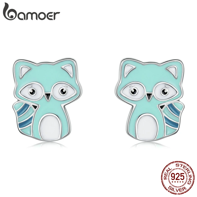 Bamoer, эмаль, Мультяшные сережки из стерлингового серебра 925 проб...