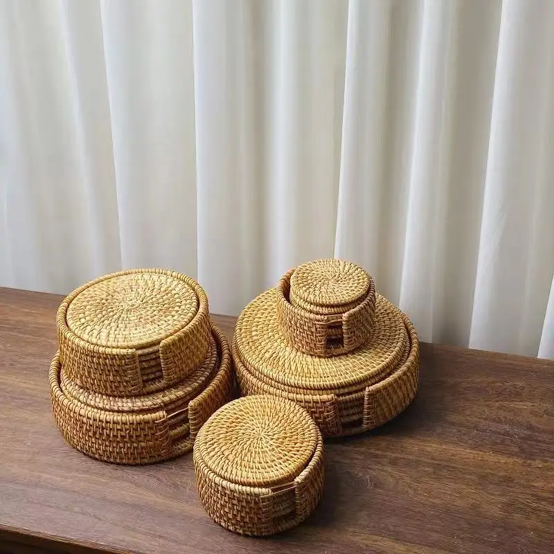 Натуральный коврик для чашек с ящиком для хранения, плетеная подстилка ручной работы, термостойкий натуральный ротанговый коврик, Горячая Изоляция, Противоскользящий коврик