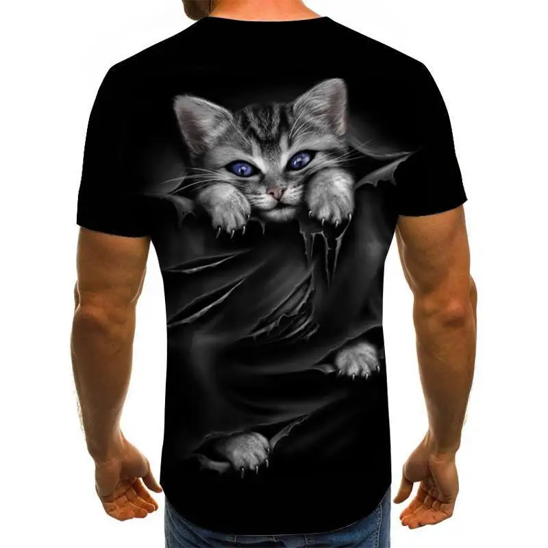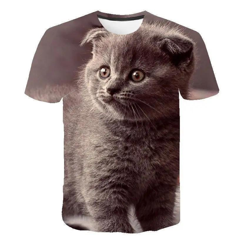 Летняя футболка с изображением животного, кошки, новинка 2021, с 3D принтом, индивидуализируемая вентилируемая футболка с круглым вырезом, в стиле хип-хоп, с коротким рукавом, универсальные футболки